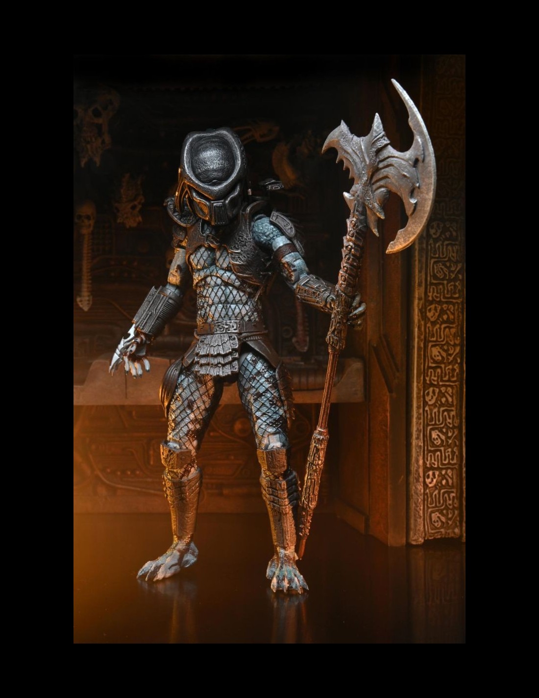 Continua la serie di action figure di Neca dedicate al 30esimo anniversario di Predator 2! Questo Warrior Predator in versione Ultimate è dotato di 30 unti di articolazione e di numerosi accessori: tresta intercambiabile, mani opzionali, ascia, teschio e molto altro ancora!