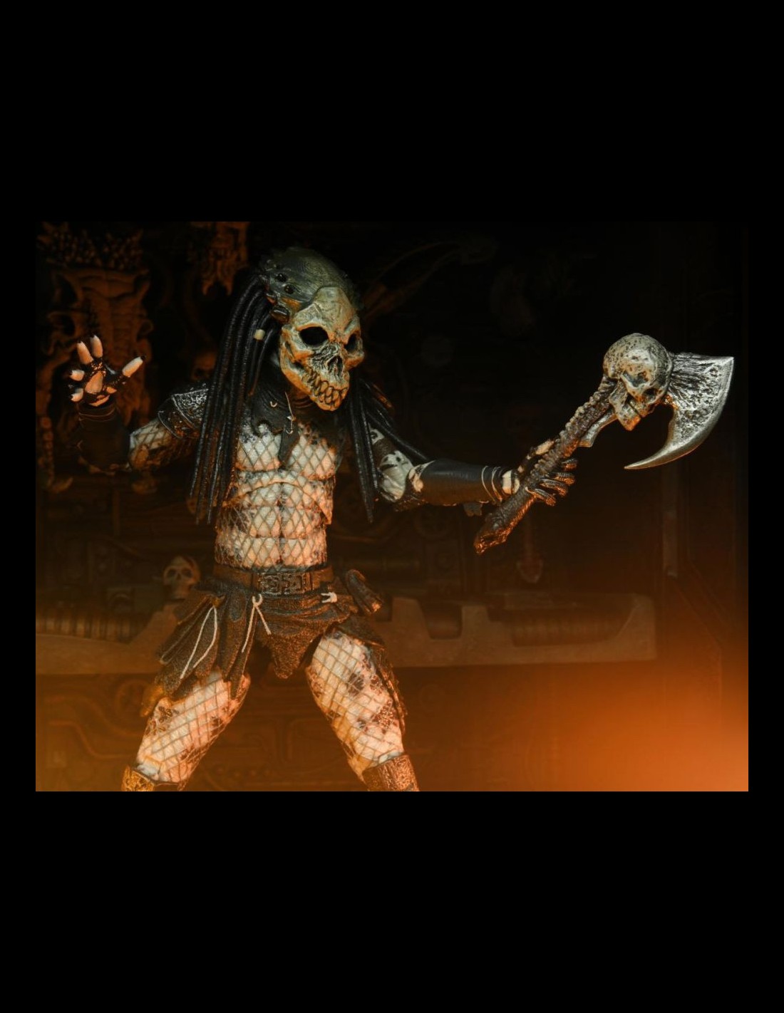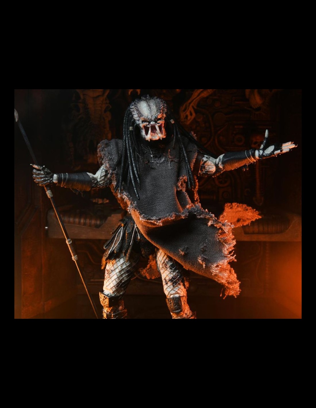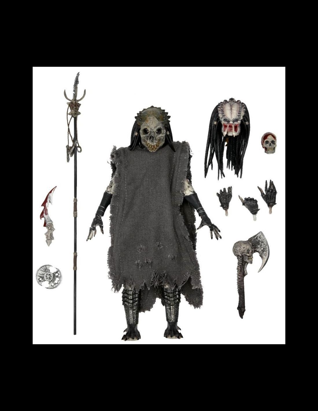 Nuova action figure Ultimate ispirata a Predator: ecco lo Shaman Predator! La figura ha ottimi dettagli ed è dotata di mantello in vera stoffa, bastone, teschio, mani e testa intercambiabili e altro ancora!