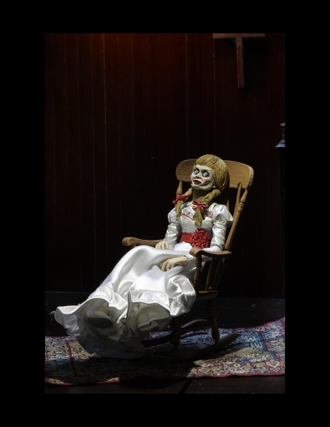 Nuova action figure in versione Ultimate di Neca dedicata a Annabelle, da "Annabelle 3". La figura è articolata e ha dettagliati abiti in vera stoffa. Dispone di due teste intercambiabili e della sedia.