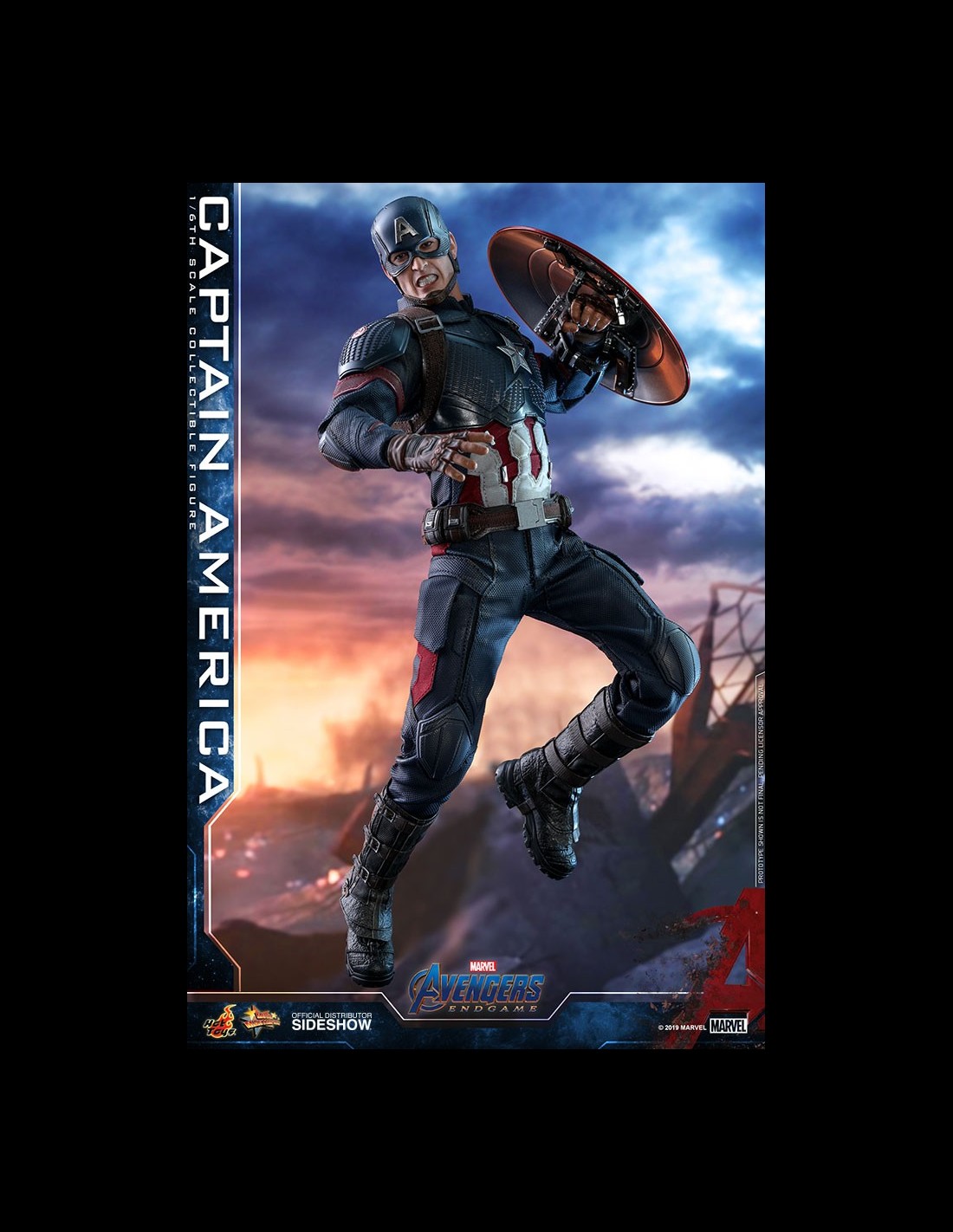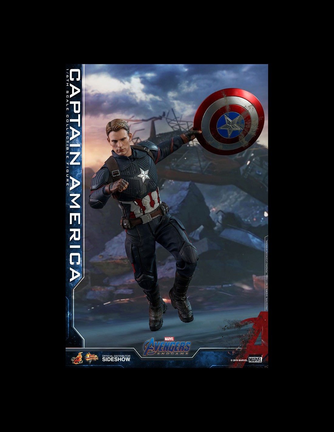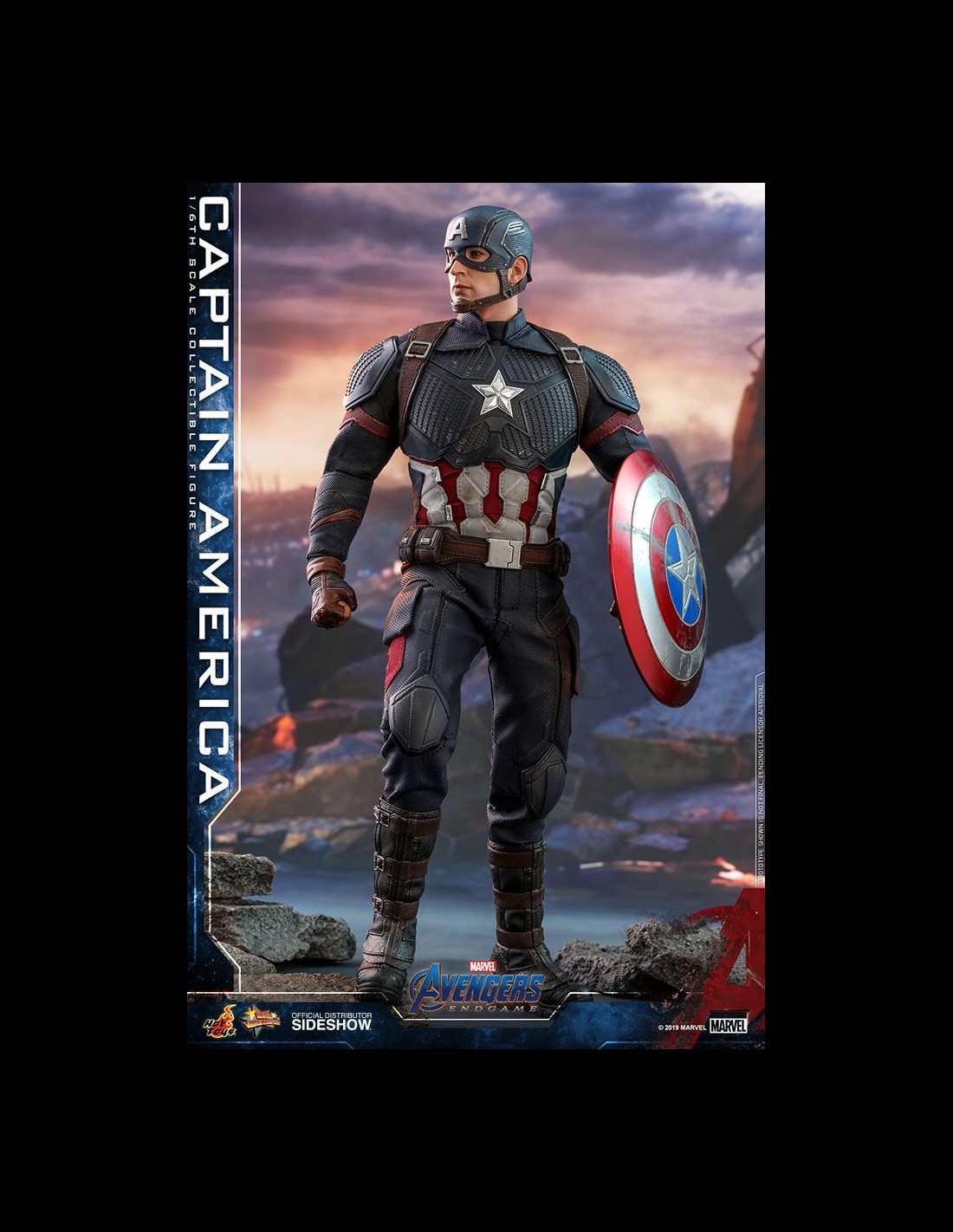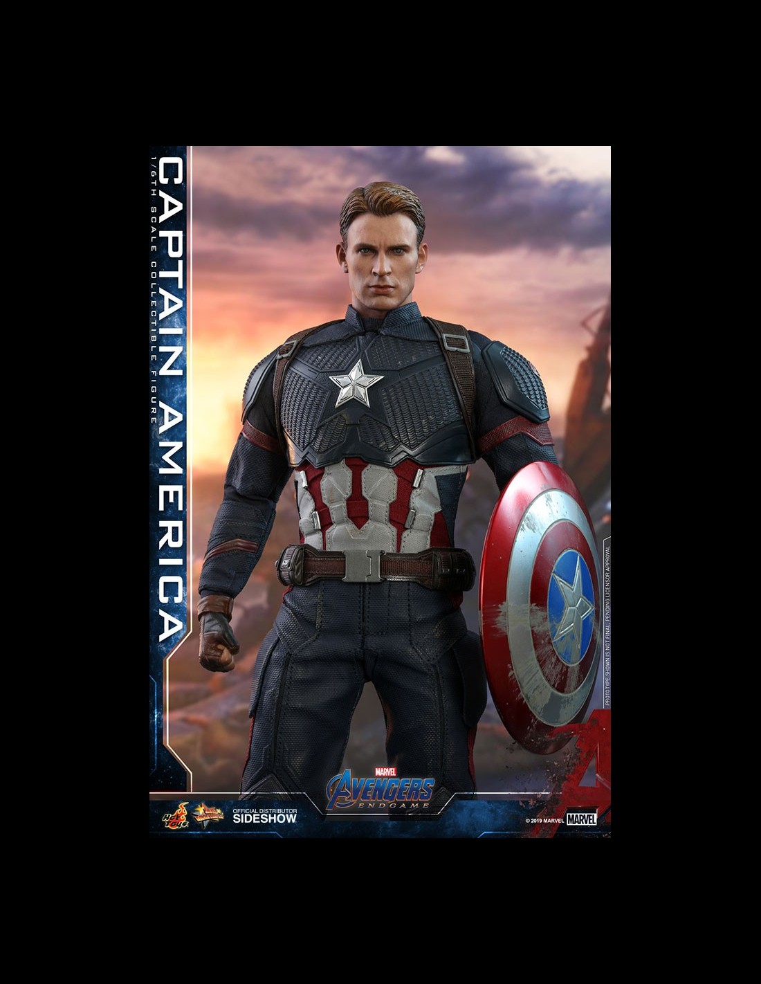 La figura da collezione altamente accurata è sapientemente realizzata sulla base dell'aspetto di Chris Evans nei panni di Capitan America/Steve Rogers di Avengers: Endgame. Caratterizzato da una testa scolpita con l'elmo appena dipinta con tre facce inferiori intercambiabili che catturano le espressioni facciali di Chris Evan e una testa scolpita senza elmo, un corpo muscoloso che ritrae naturalmente il corpo muscoloso di Capitan America, un abito meticolosamente su misura con un emblema a stella sul petto, Cap's scudo stellato, una bussola delicata, un elmo caratteristico e un supporto per figure a tema cinematografico appositamente progettato.
