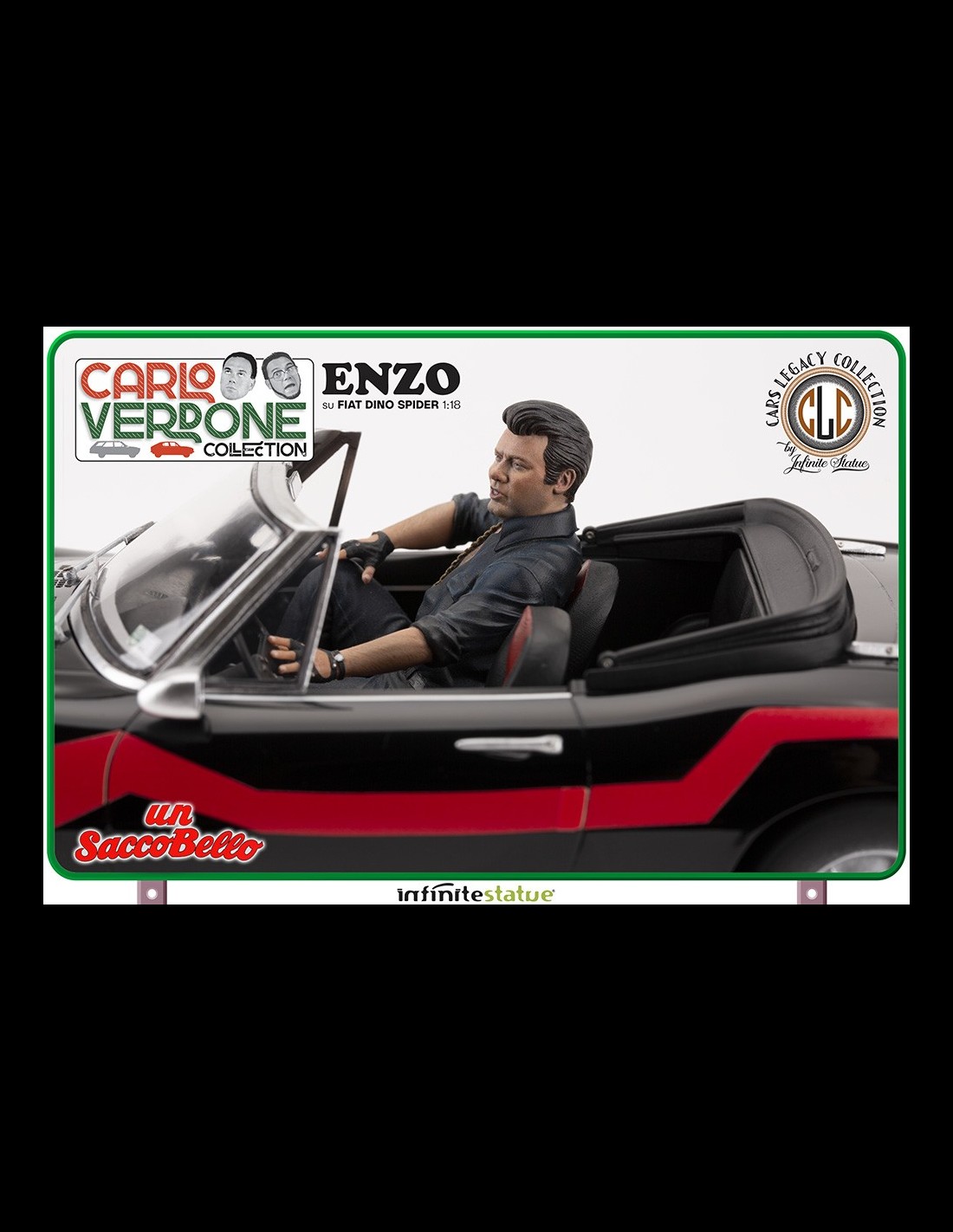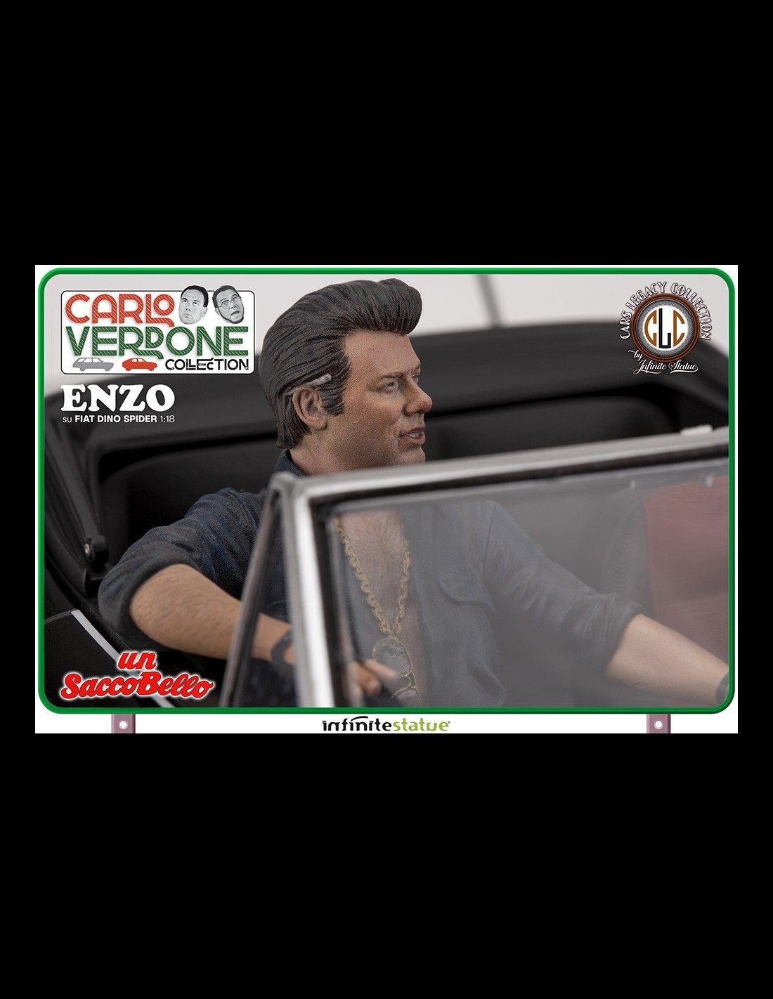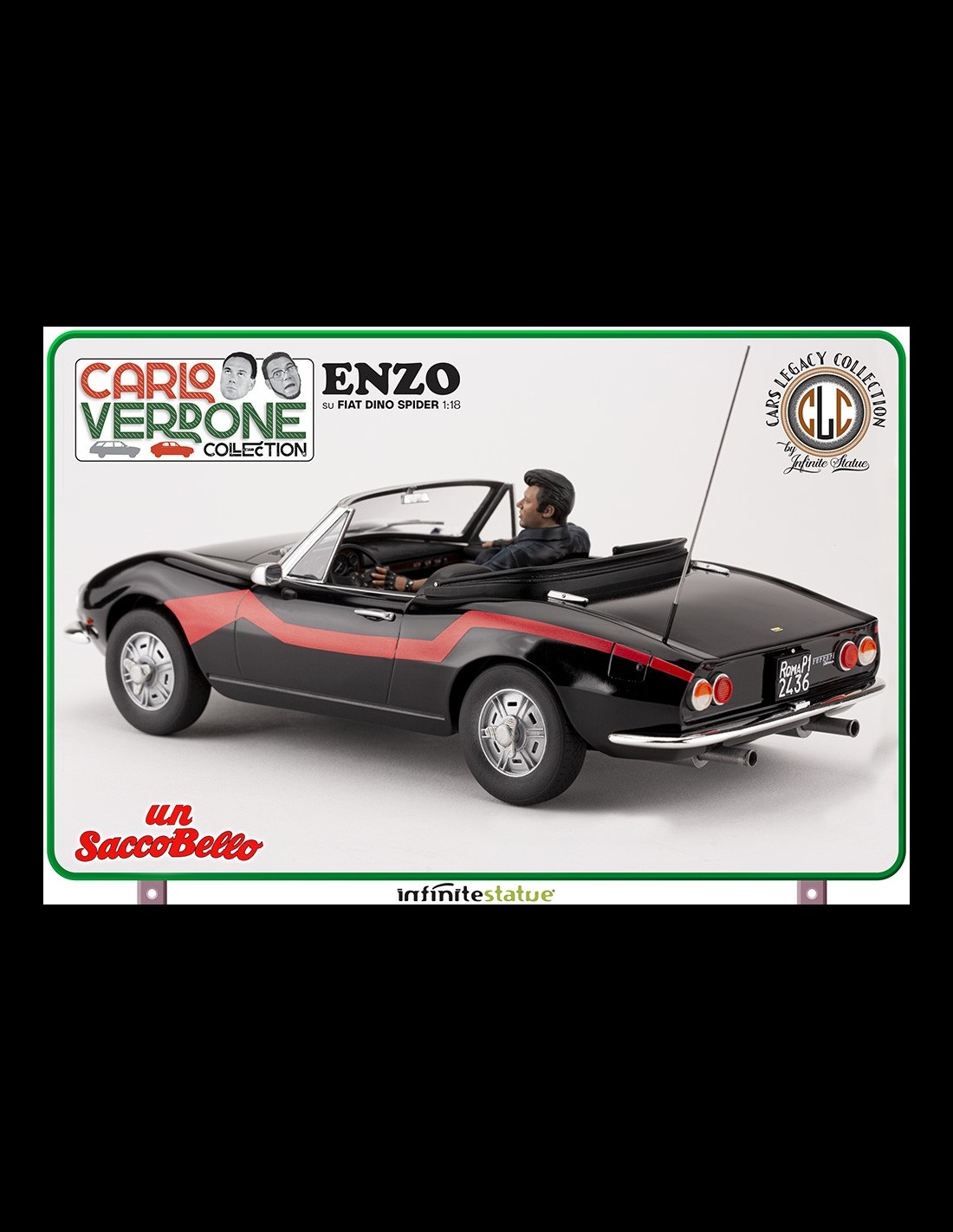 Enzo su Fiat Dino 1:18 Resin Car è la quarta replica in resina ispirata ai capolavori di Carlo Verdone. Dedicata al film del 1980 “Un Sacco Bello”, la mitica Fiat Dino con Enzo sono rigorosamente perfetti e si aggiungono alla linea Car Legacy Collection di Infinite Statue.