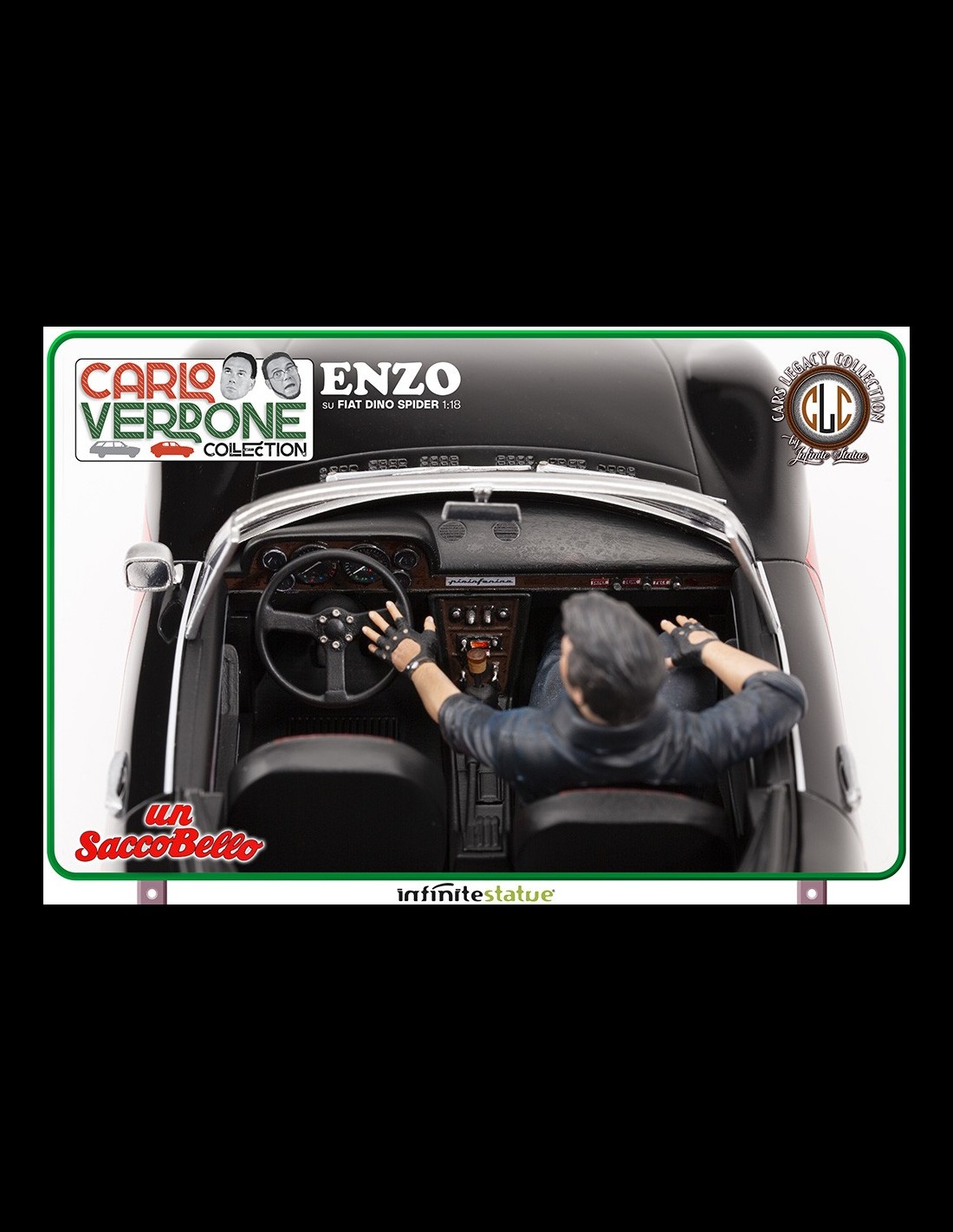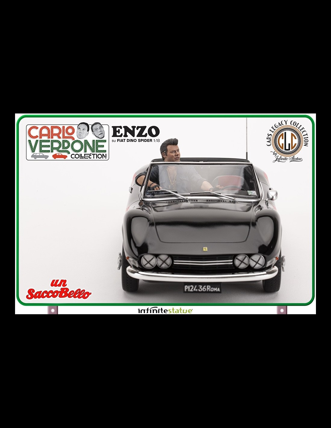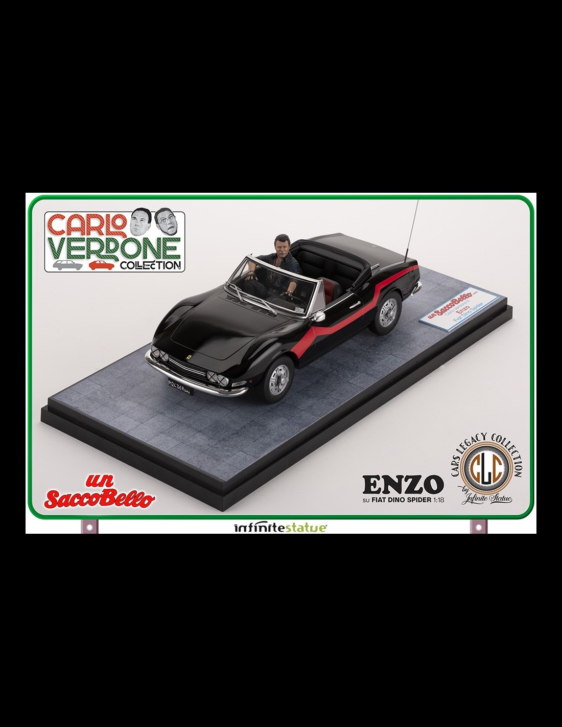 Enzo su Fiat Dino 1:18 Resin Car è la quarta replica in resina ispirata ai capolavori di Carlo Verdone. Dedicata al film del 1980 “Un Sacco Bello”, la mitica Fiat Dino con Enzo sono rigorosamente perfetti e si aggiungono alla linea Car Legacy Collection di Infinite Statue.