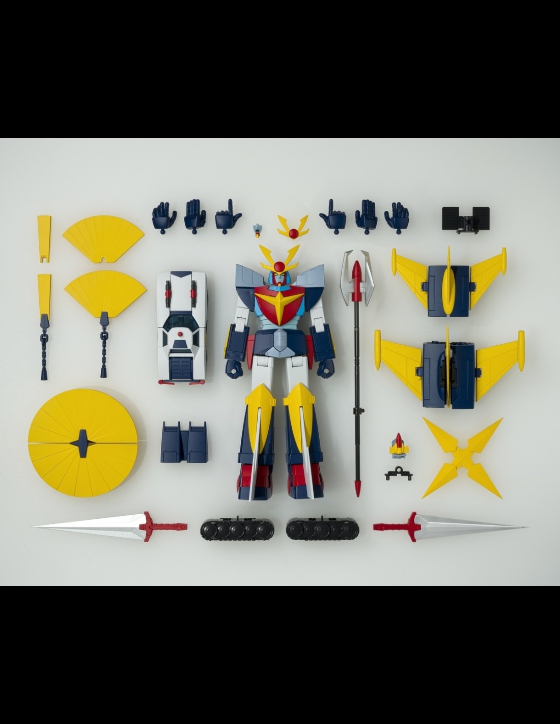 Shokugan Daitarn 3 in kit di montaggio! Trasformabile e posabile. In questo set è compresa anche la Match Patrol trasformabile! E alcuni accessori extra come la spada.