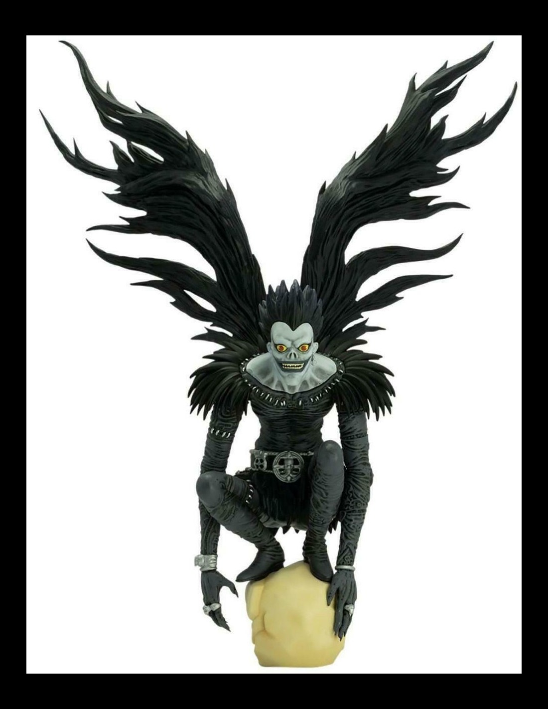Ecco a voi Ryuk, lo Shinigami più celebre e conosciuto, amato da tutti quelli che hanno letto il famoso manga Death Note. Alta 30 cm, comprese le ali, questa figure in PVC è senza dubbio un vero pezzo da collezione per tutti gli amanti della serie. Il packaging 'Window box' permette si esporre la figure senza estrarla dalla confezione. Prodotto con licenza ufficiale in scala 1:10