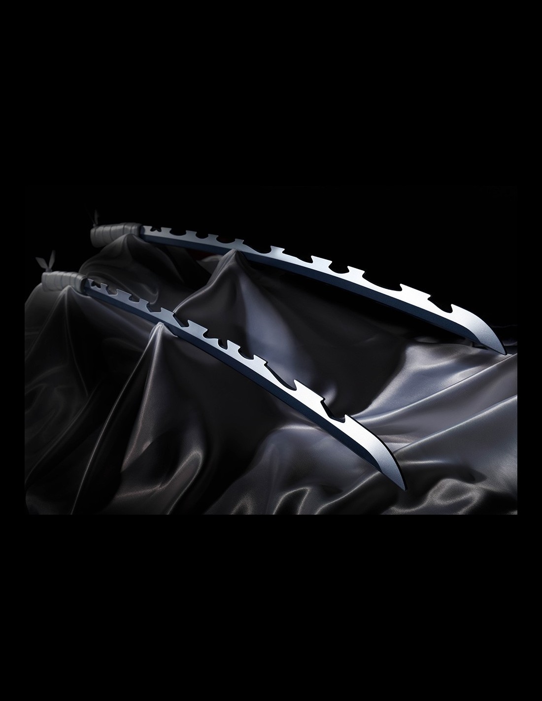 Dalla serie cult Demon Slayer, ecco le katane di Inosuke, con il loro design iconico. Il set include 2 sciabole con chip sonoro che ricreano dialoghi dall' anime, effetti sonori e musica.