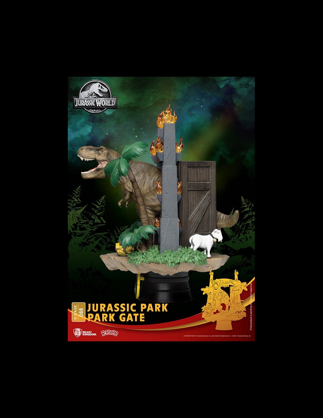 Da Beast Kingdom un fantastico D-Stage dedicato a Jurassic Park. Dal primo film della serie la riproduzione del Park Gate con T-Rex e logo originale. Una serie di LED lo fanno illuminare!!