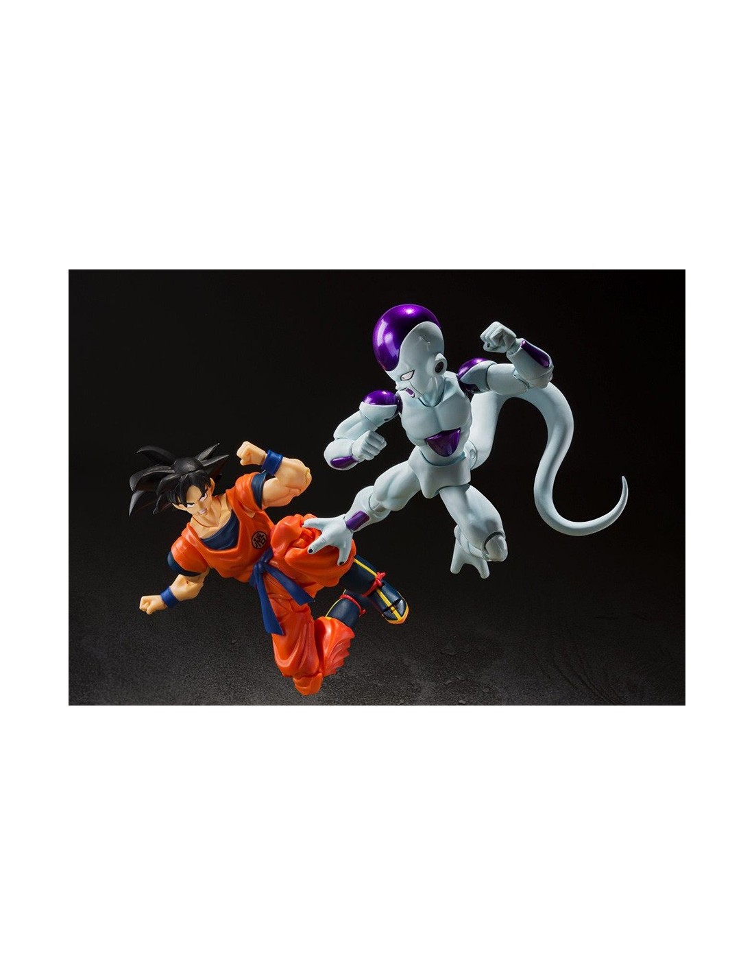 Frieza Fourth Form, come visto in "Dragon Ball Z" arriva nella serie SH Figuarts! Grazie alle tante articolazioni e agli accessori potrete ricreare tantissime scene dinamiche! Nella scatola troverete: due teste intercambiabili, mani , braccia e piedi opzionali, sfera del drago di Namecc con 5 stelle e altro ancora!