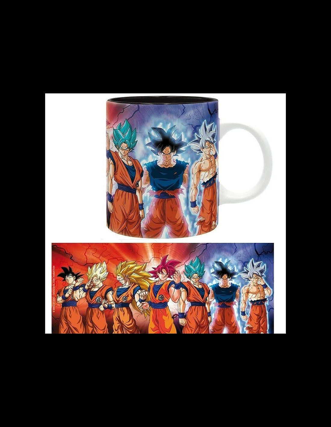 Questa tazza di Dragon Ball Super prodotta da ABYstyle rappresenta tutte le diverse trasformazioni di Goku che ha avuto nel corso dell'intero anime. Da Goku Kaioh-Ken a Goku Ultra Istinto