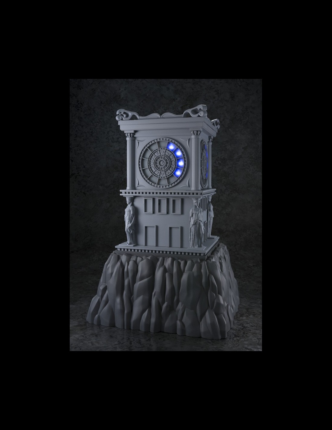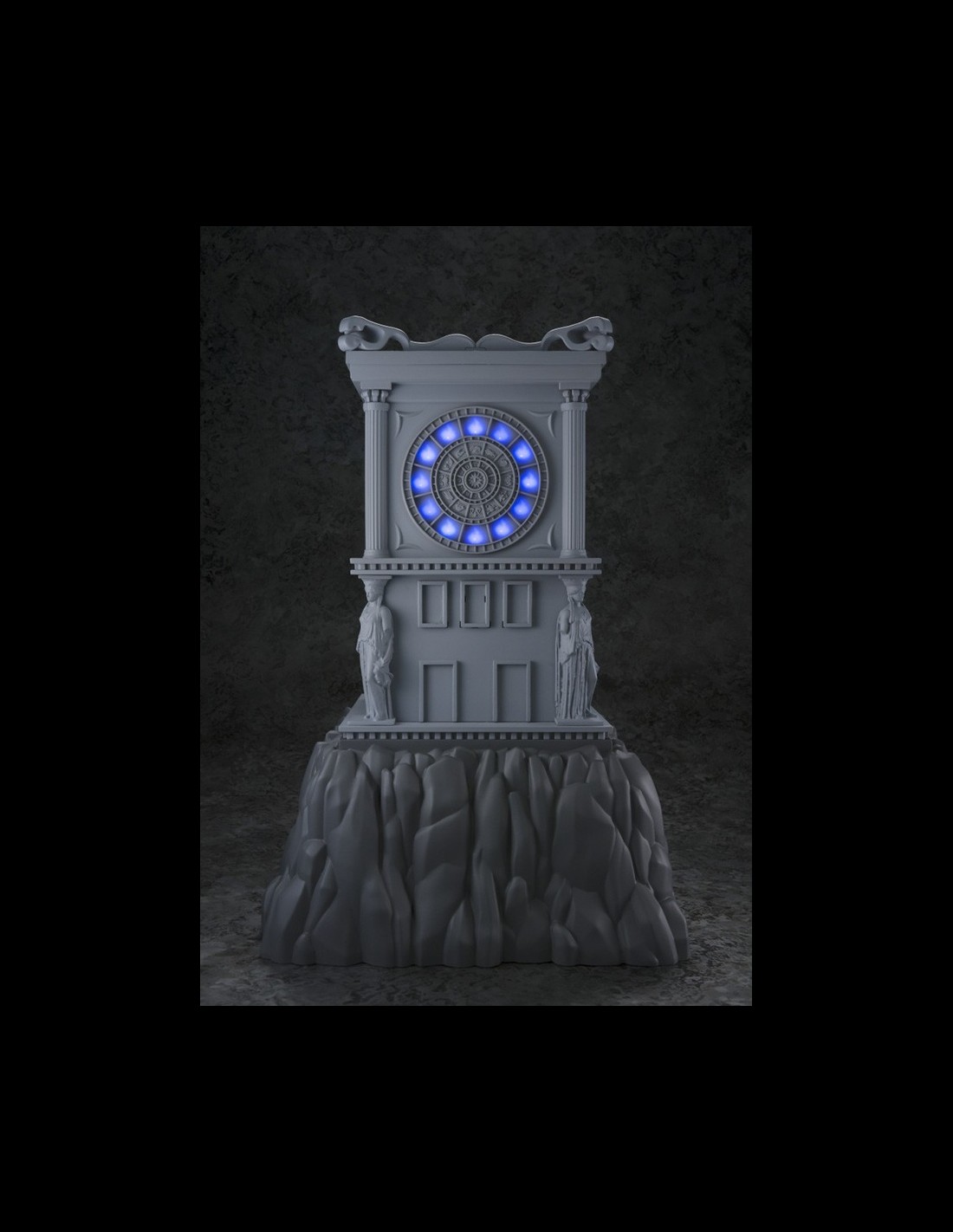 A grande richiesta, ecco finalmente la Meridiana dello Zodiaco! Con questo incredibile accessorio potrete ricreare le vostre scene preferite dei Cavalieri dello Zodiaco. La torre è alta circa 26 cm e dispone di effetti luminosi e sonori (musiche e voci dall'anime).