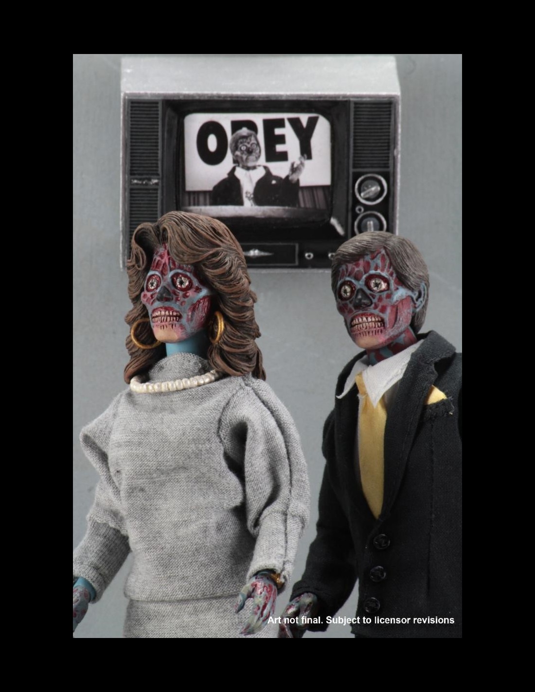 Neca dedica un 2-pack al film culto anni '80 di John Carpenter, "Essi Vivono"! Le figure (un uomo e una donna alieni) sono molto dettagliate, hanno vestiti in stoffa e dispongono di accessori.
