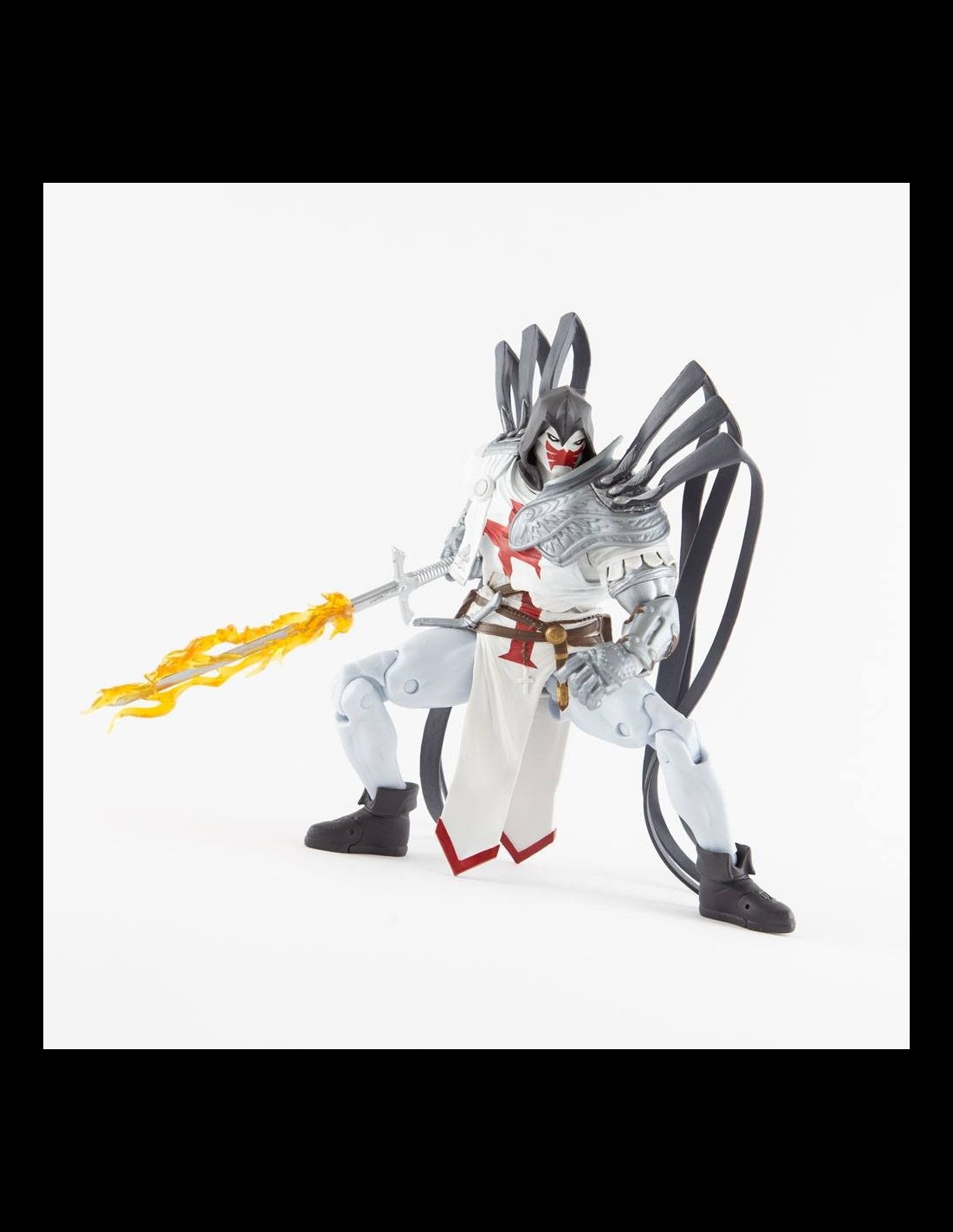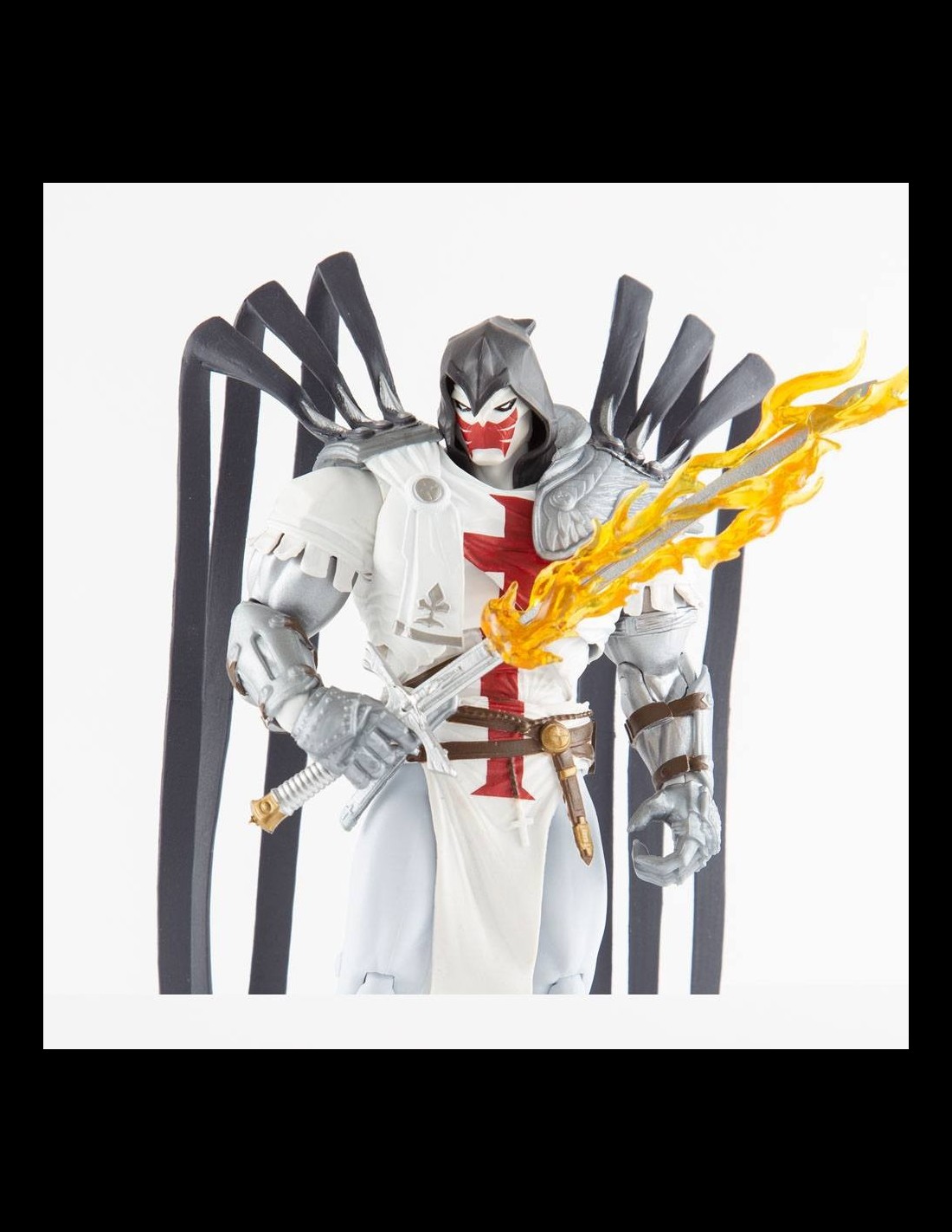 As an agent of the sacred Order of St. Dumas, Azrael fights crime in Gotham City as the secret organization's champion. Often fighting alongside Batman and his team of heroes, this avenging angel is clad in the arcane Suit of Sorrows-a centuries-old suit of armor forged from the melted blades and chestplates of the Order's fallen soldiers. Azrael is also an expert hand-to-hand-combatant and swordsman, wielding a mystical, flaming sword, in his never-ending battle against the forces of evil.
