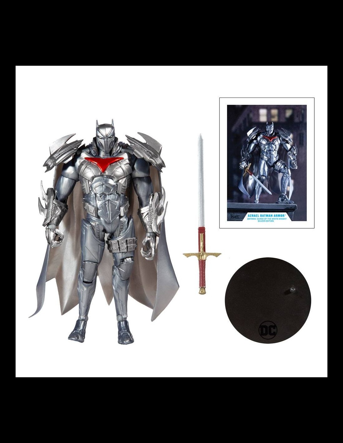 - Azreal is featured as an all silver variant of the orginal Azrael in Batman Armor figure