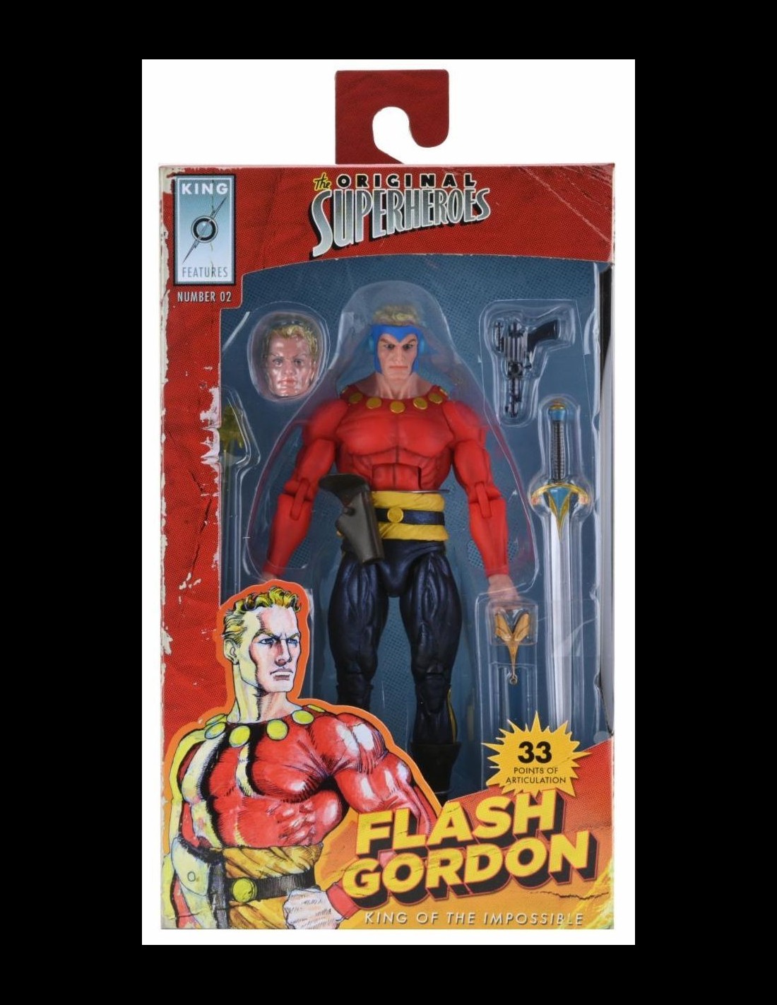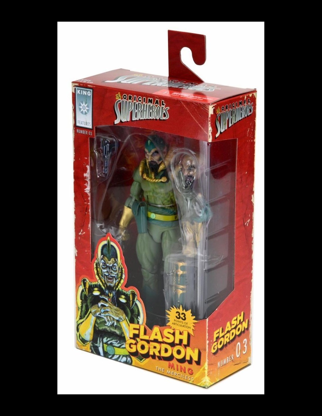 Neca presenta una nuova serie di action figure dedicate ai classici del mondo dei fumetti e della cultura pop: Original Superheroes! La prima serie include tre personaggi tra i più amati di King Features: Flash Gordon, The Phantom (l'Uomo Mascherato) e Ming the Merciless (Ming lo spietato). Ogni figura arriva in una scatola a tema ed è dotata di 30 punti di articolazione e di accessori.