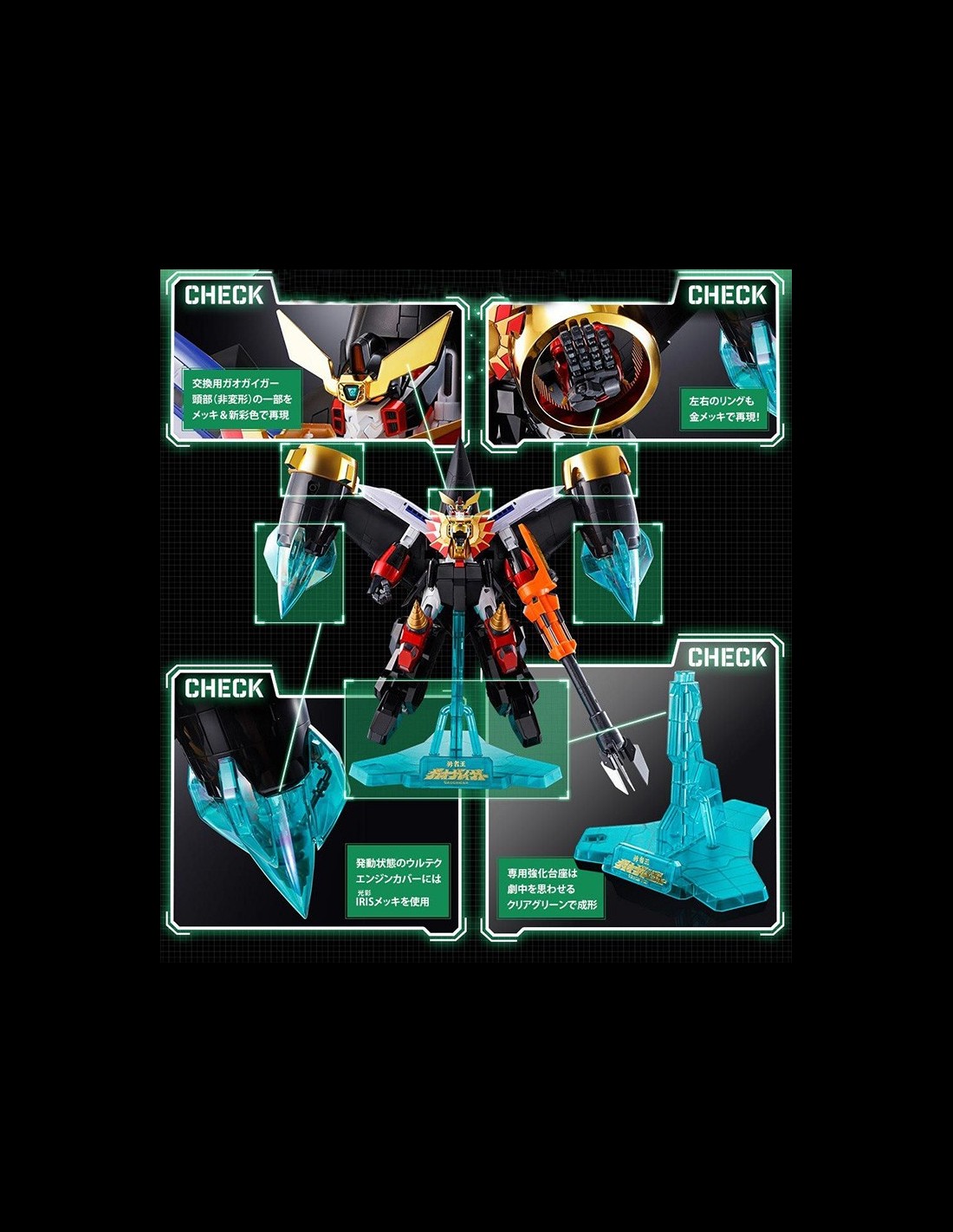 Stealth Gao â…¡, Two Ul-Tech engines, Two ignition Ul-Tech Engine covers, Gatling Driver, Optional GAOGAIGER head part (non trasformabile), optional GAIGER face part, Protect Ring, Phantom Ring, dispaly stand.
