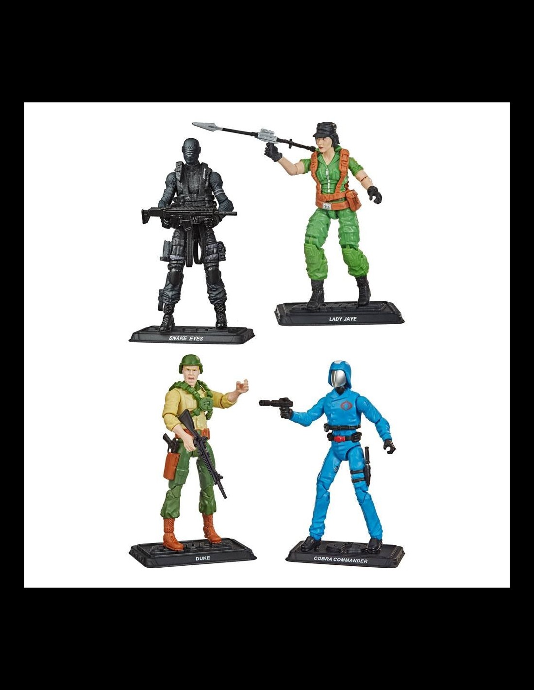 Dalla serie Hasbro Retro Collection arriva questo set di 4 action figure da 10 cm dal deciso carattere vintage cosi' composto: Snake Eyes, Cobra Commander, Duke e Lady Jaye.