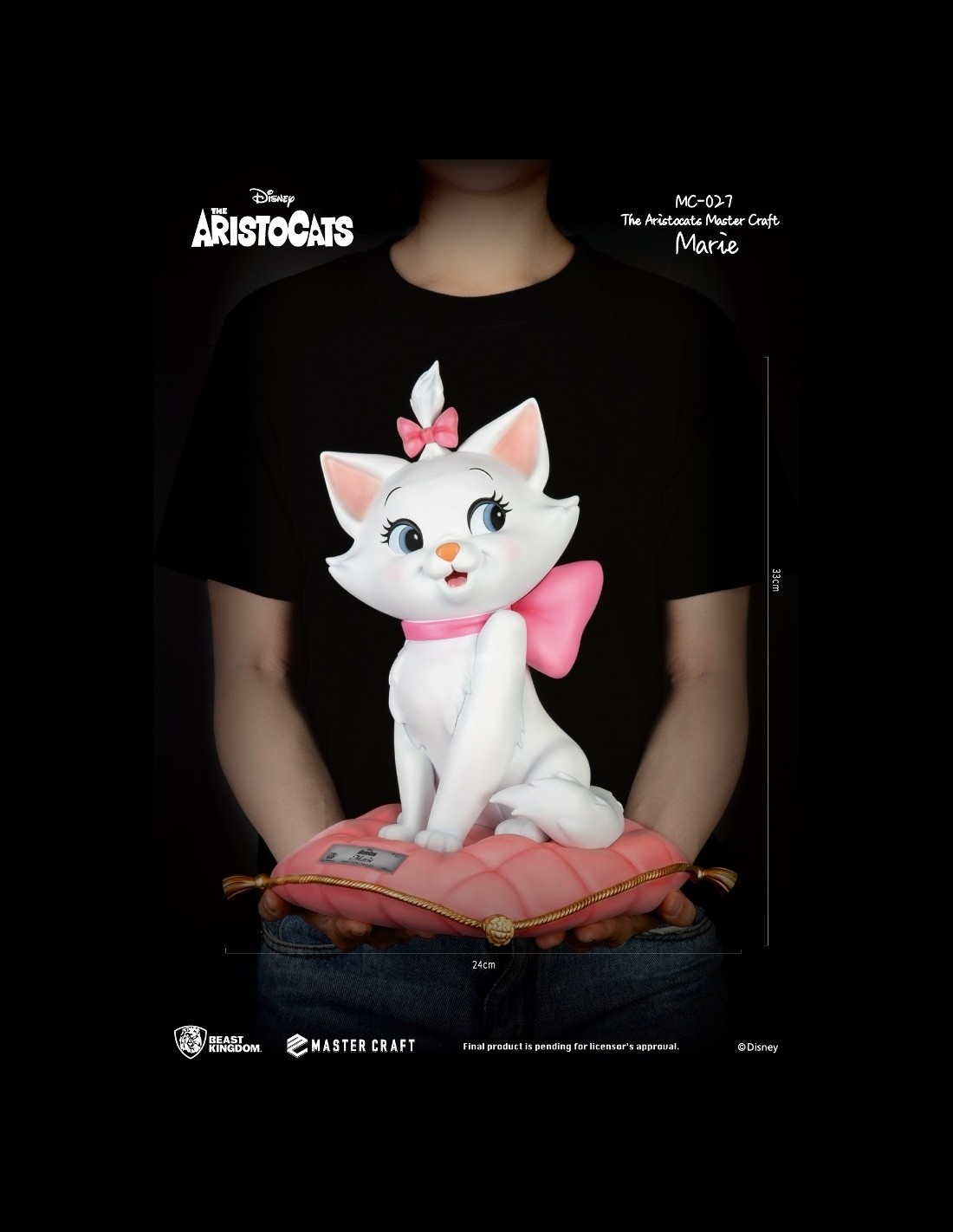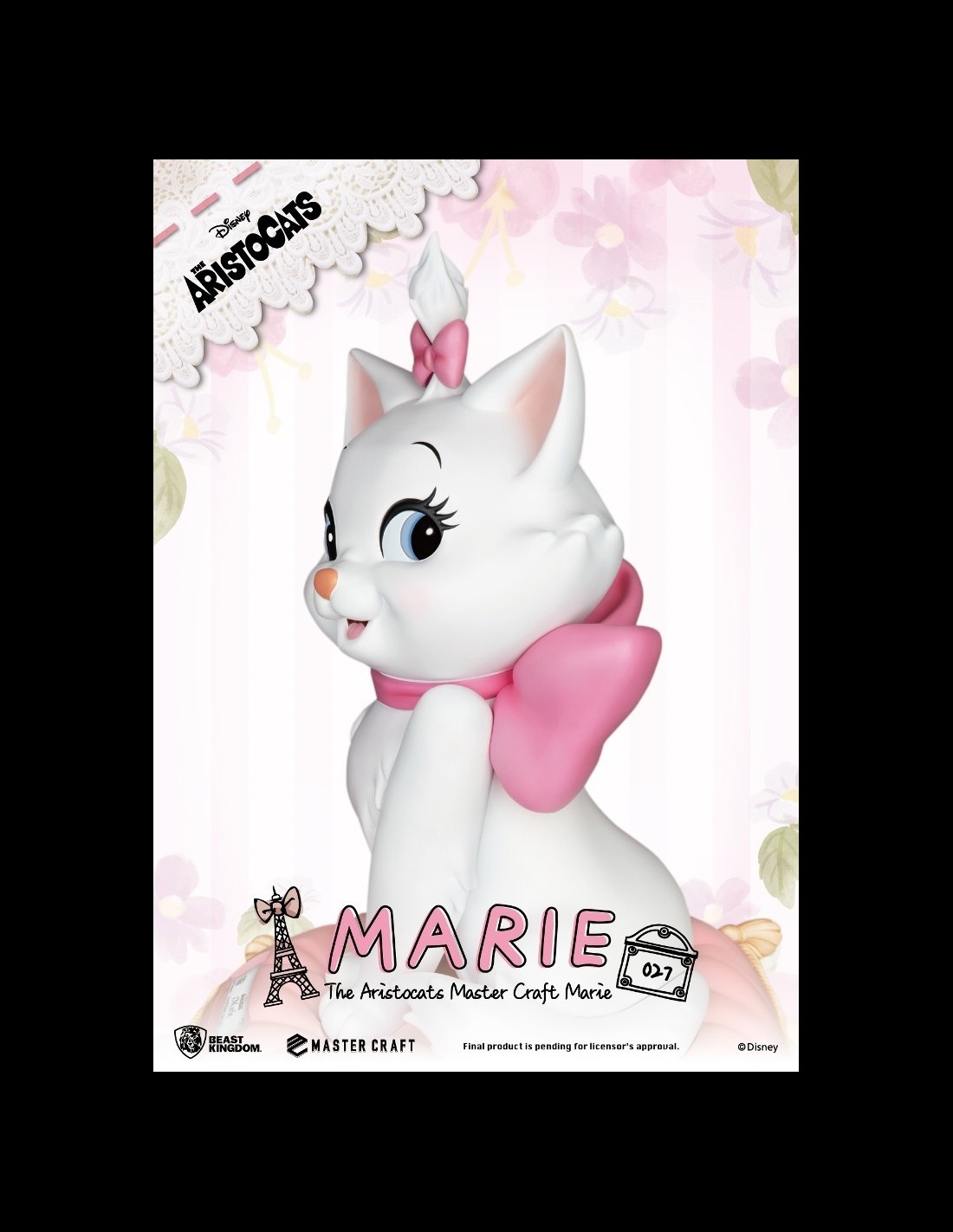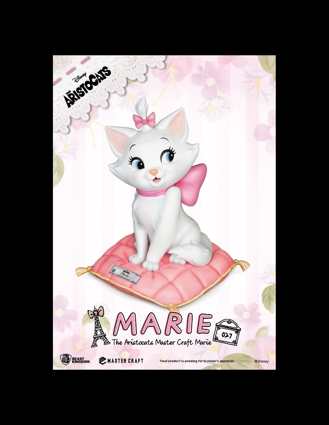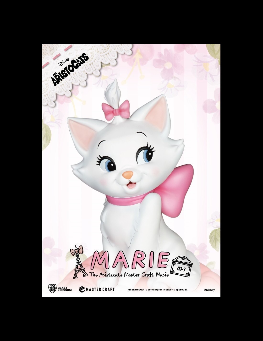 Beast Kingdom, The 'Entertainment Experience Brand' is proud to introduce the latest in the high-end Master Craft Series: Marie from Disney's Aristocats. Set in 1910 Paris, the 20th animated classic from Disney follows a group of aristocratic Parisian cats searching for their lost family fortune! Marie, a white-furred kitten, is the middle and only female kitten of the Duchess! Mimicking the elegance and high stature of her mother, Marie is often viewed as spoiled, especially by the Alley Cat, Thomas O'Malley, who is helping the family on their quest. Yet in reality, deep-down Marie is a romantic daydreamer full of love and warmth in her heart, attributes all found in the design of the Master Craft Marie.