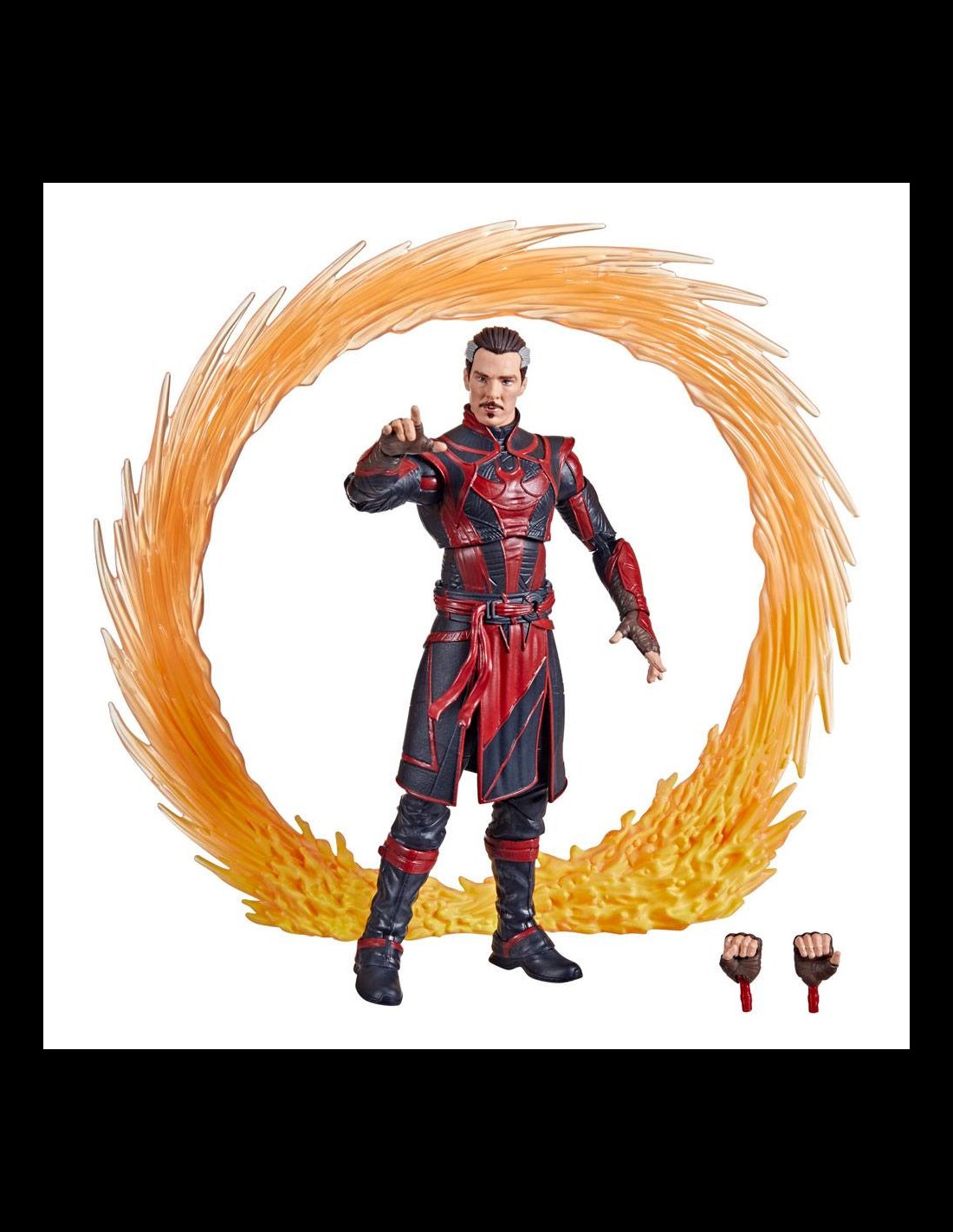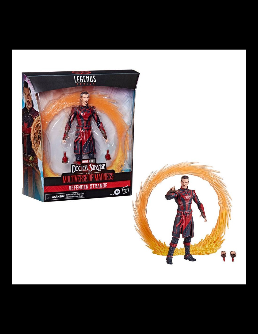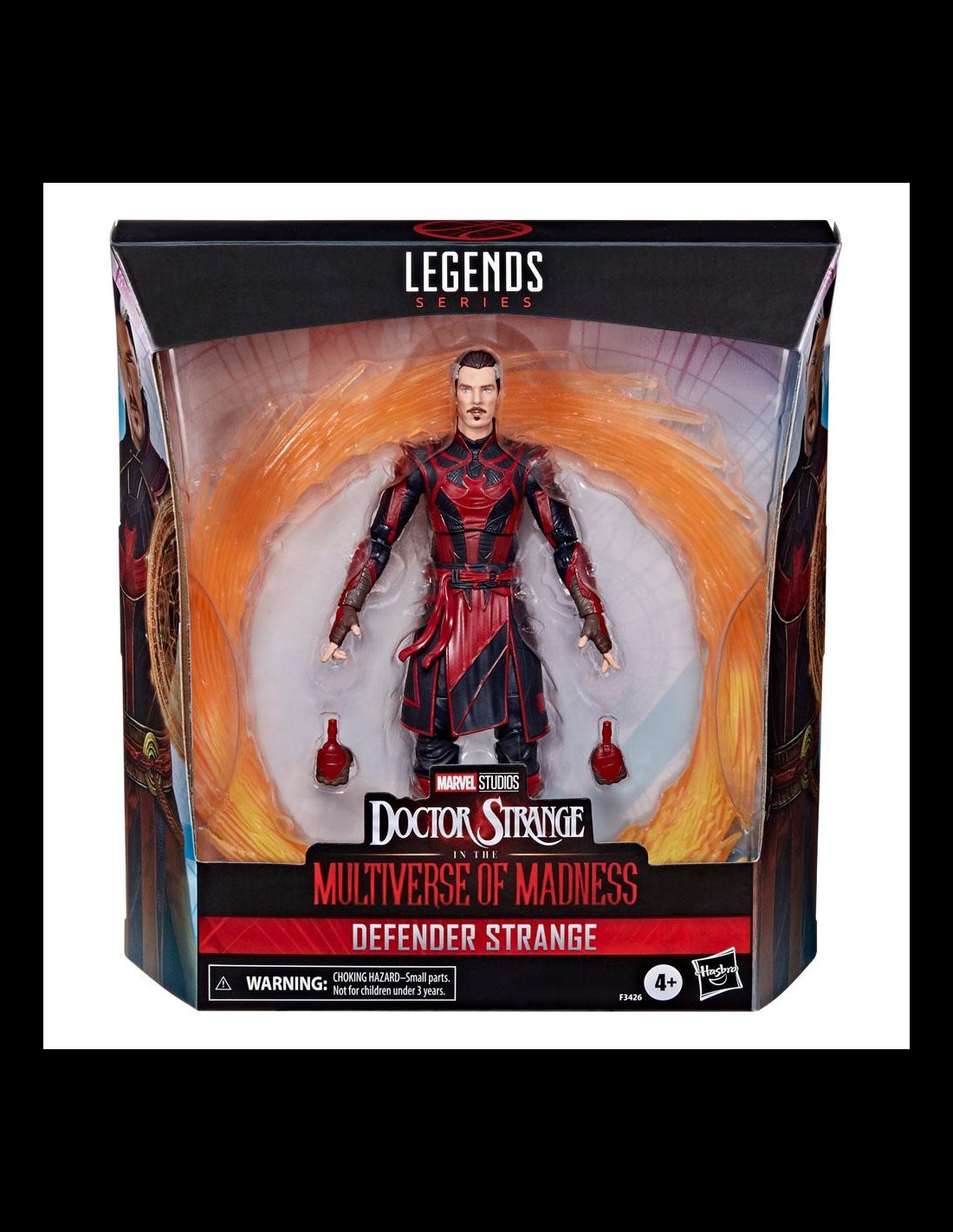 PREMIUM FEATURES AND ACCESSORIES: This 6-inch Legends Series Defender Strange figure features distinct black-and-red deco, alternate hand accessories, and "Sling Ring" portal accessory inspired by the Marvel Cinematic Universe films