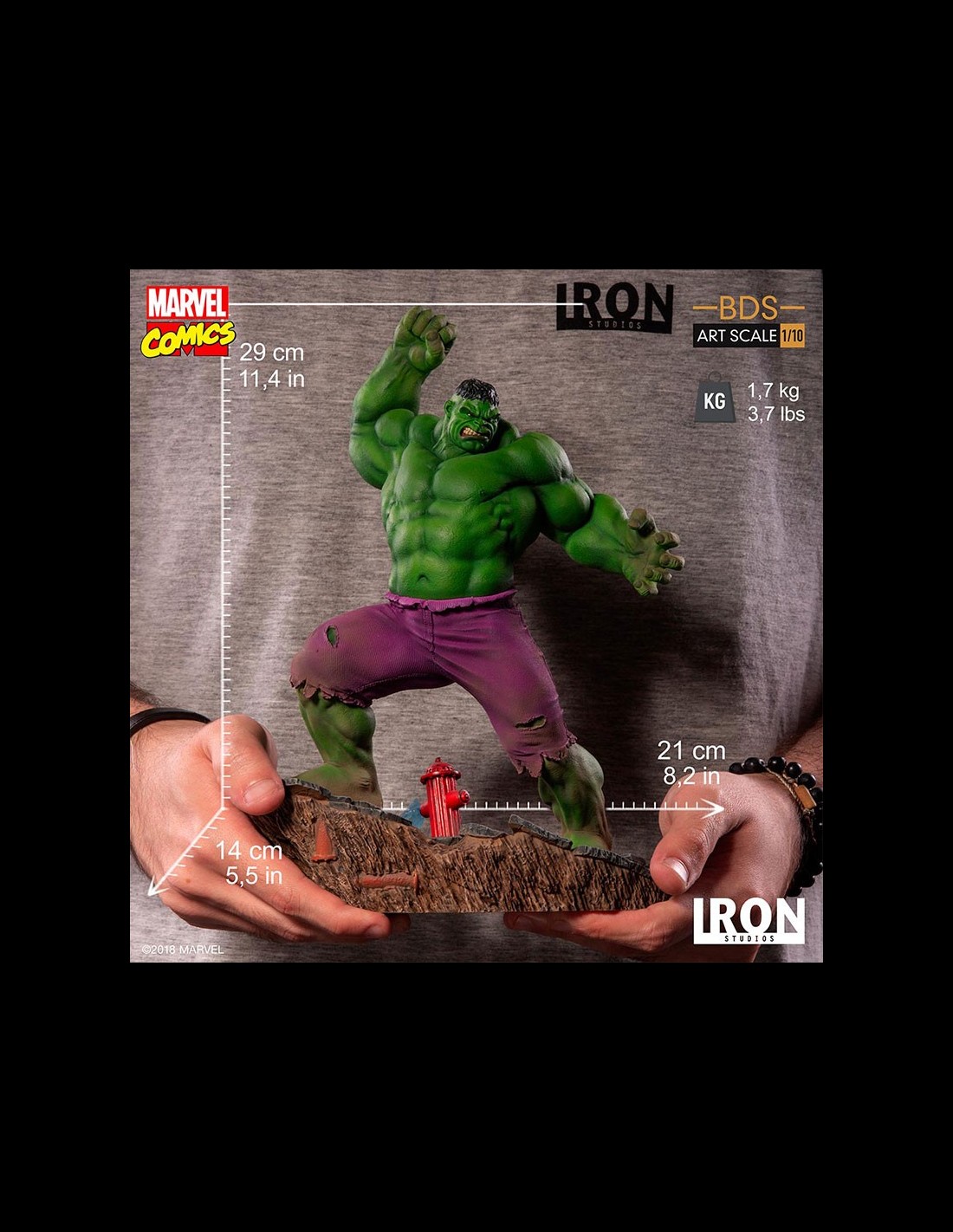 Dall'Universo Marvel Comics, Iron Studios ha realizzato questa statua in resina dedicata a Hulk. Dipinta a mano, la statua misura 28cm, con base scolpita. Arriva in edizione limitata.