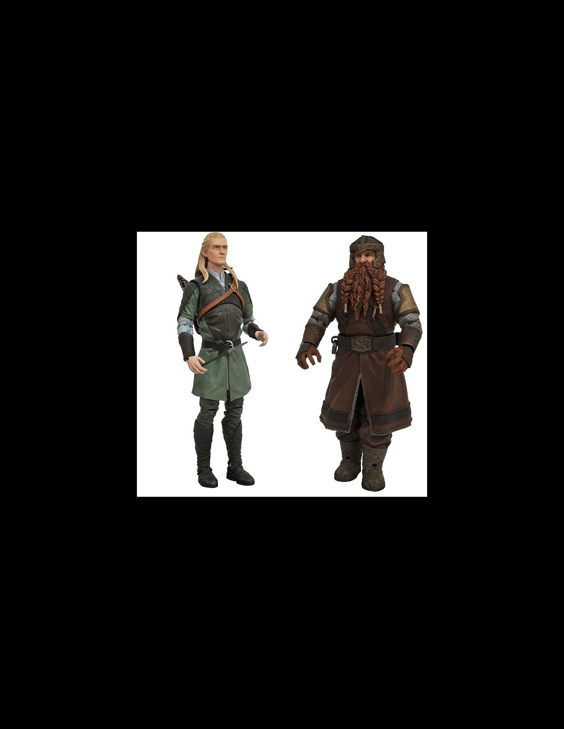 Da Diamond le action figure di Legolas e Gimli, da Lord of the Rings serie 1 dedicata ai personaggi del film. Le figure misurano 15cm, con 16 punti di articolazione e incredibili dettagli. Ogni blister della serie include anche una parte della figura di Sauron da 13inch da assemblare.