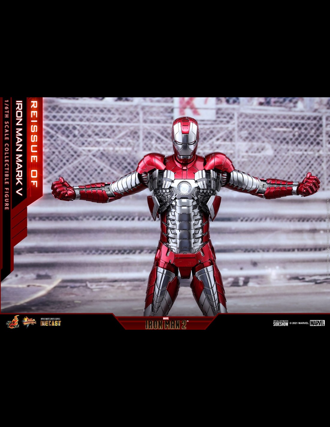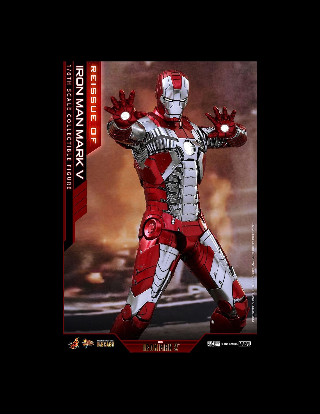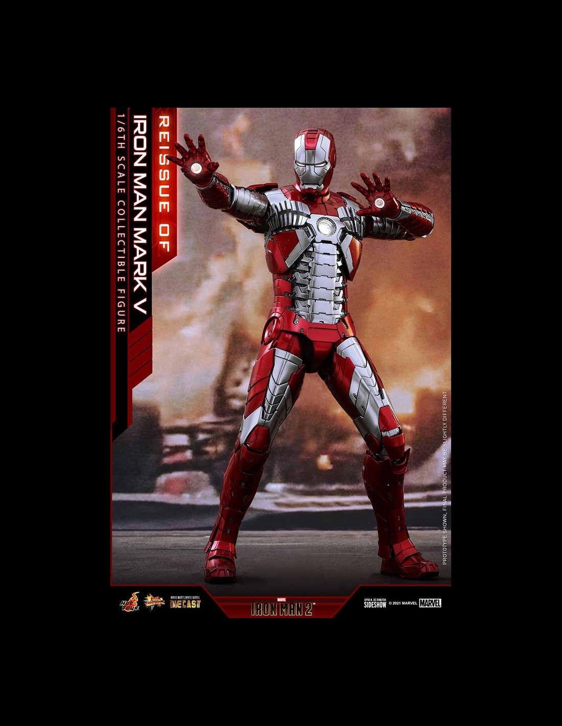 Sideshow and Hot Toys is pleased to reissue the Iron Man Mark V Sixth Scale Collectible Figure for fans who had missed its first release! Inspired by the signature appearance of Iron Man Mark V in Iron Man 2, the truly detailed Suitcase Armor figure in diecast has articulated armor pieces and highly poseable structure to recreate the fancy scenes.