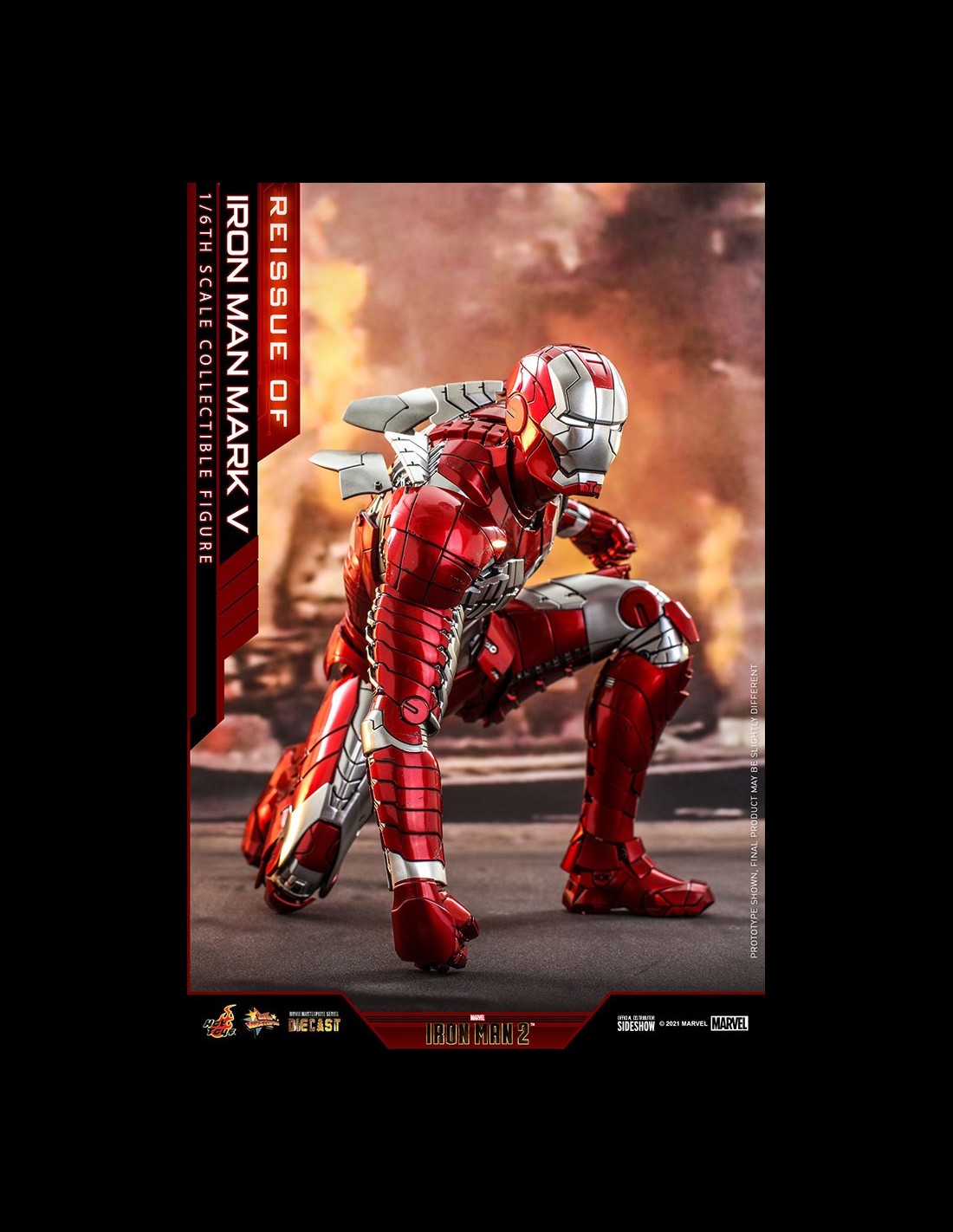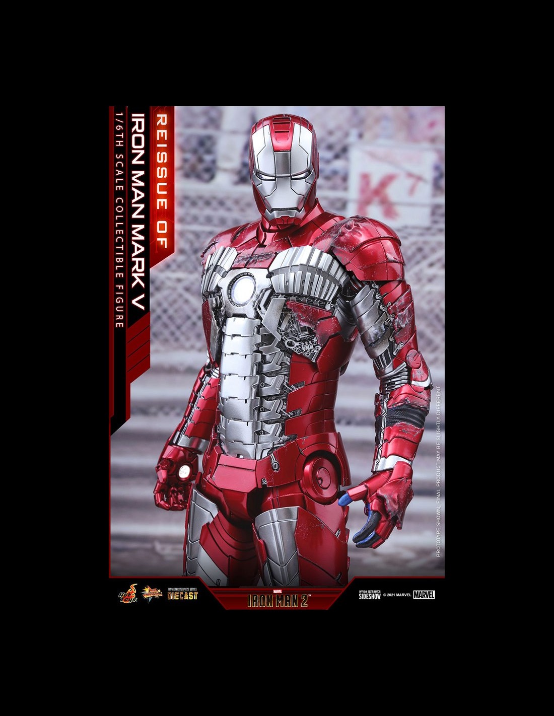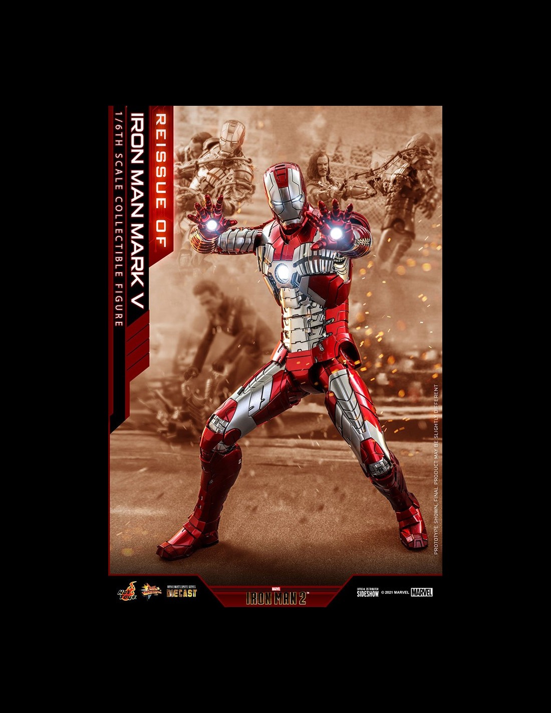 Sideshow e Hot Toys sono lieti di ristampare la figura da collezione scala 1/6 di Iron Man Mark V per i fan che avevano perso la sua prima uscita! Ispirato all'aspetto caratteristico di Iron Man Mark V in Iron Man 2, la figura dettagliata dell'armatura in Die Cast ha pezzi di armatura articolati e una struttura altamente snodabile per ricreare le scene del combattimento con Whiplash.