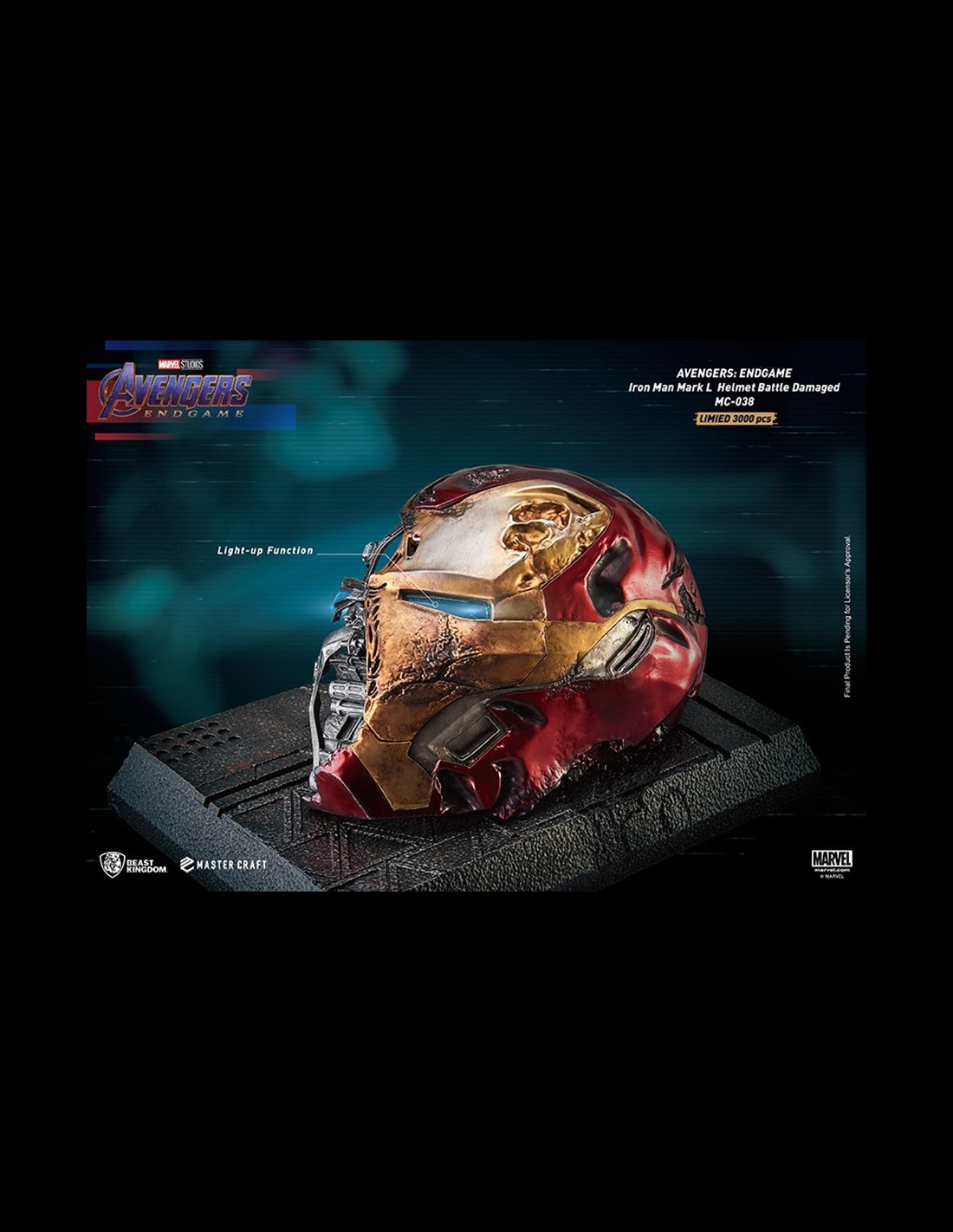 Beast Kingdom aggiunge un pezzo unico ed esclusivo alla sua linea Master Craft con questo Battle Damaged Iron Man Mark 50 Helmet. La riproduzione è fedele all'originale visto in Avengers Endgame con dettagli accurati e funzioni Light-up. Arriva in edizione limitata e numerata.