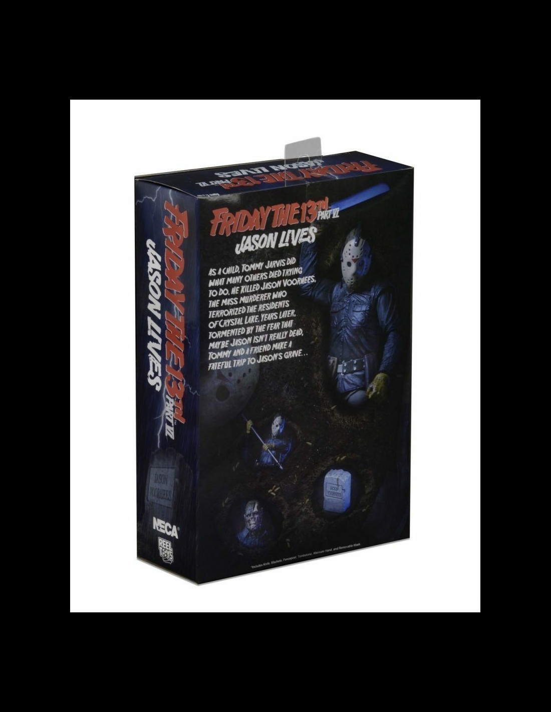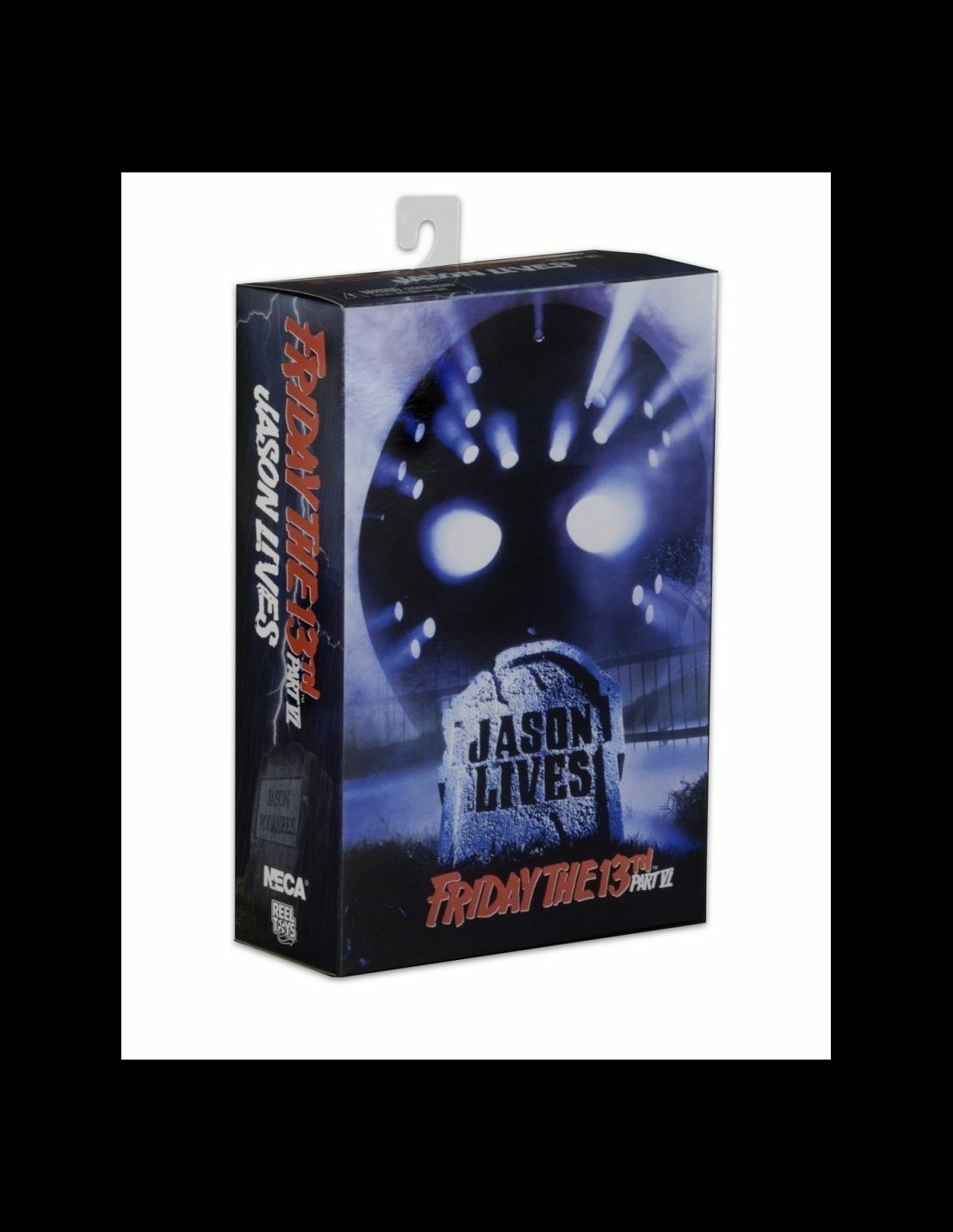 Da "Venerdì 13 parte 6: Jason vive" ecco una nuova action figure deluxe di Jason! La figura dispone di 25 punti di articolazione e di diversi accessori: maschera removibile, machete, pugnale e lapide.