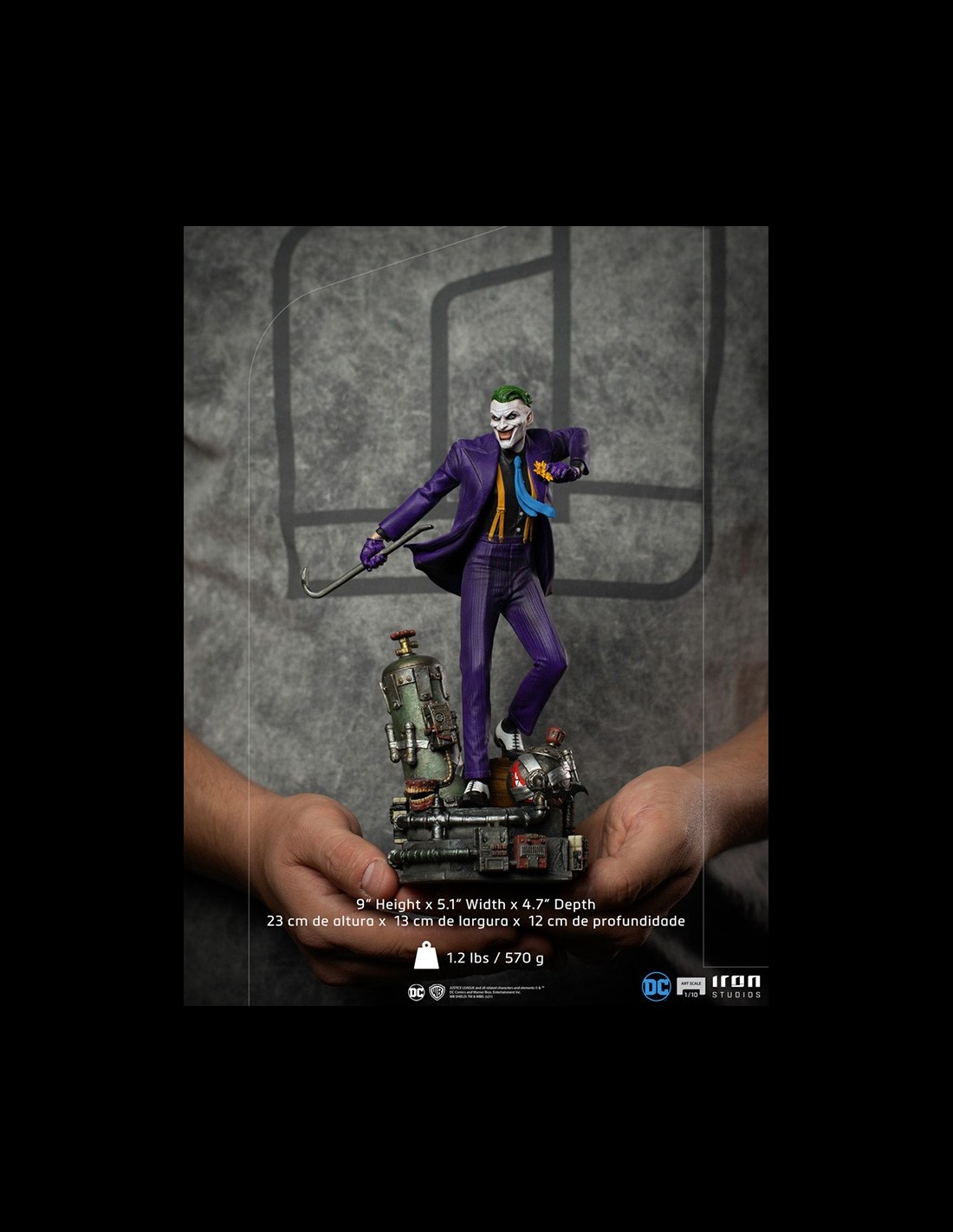 Da Iron Studios la statua di Joker Art Scale 1/10 Dc Comics. Con il suo enigmatico sorriso Joker in resina dipinto a mano, appoggia su base a tema e arriva in edizione limitata. La statua è disponibile in versione regular e versione Deluxe con doppia testa intercambiabile, cappello e gas verde (disponibile sul nostro sito ad EUR 199).