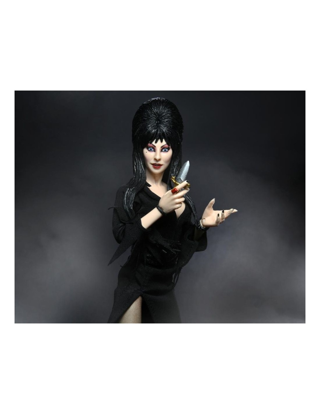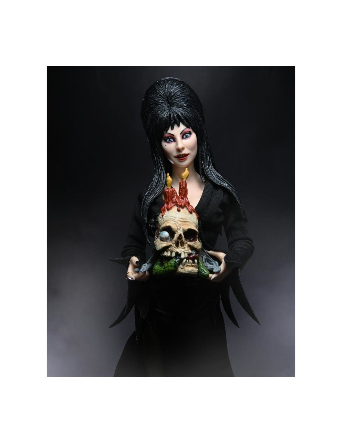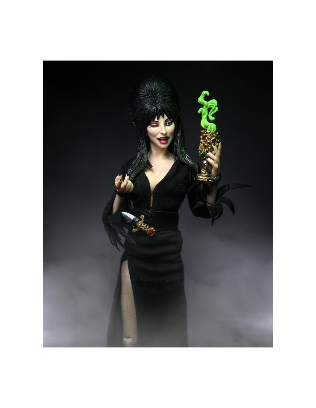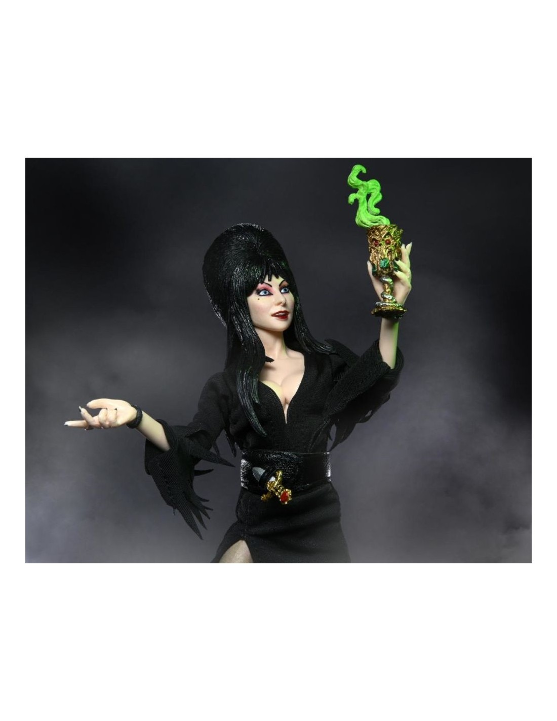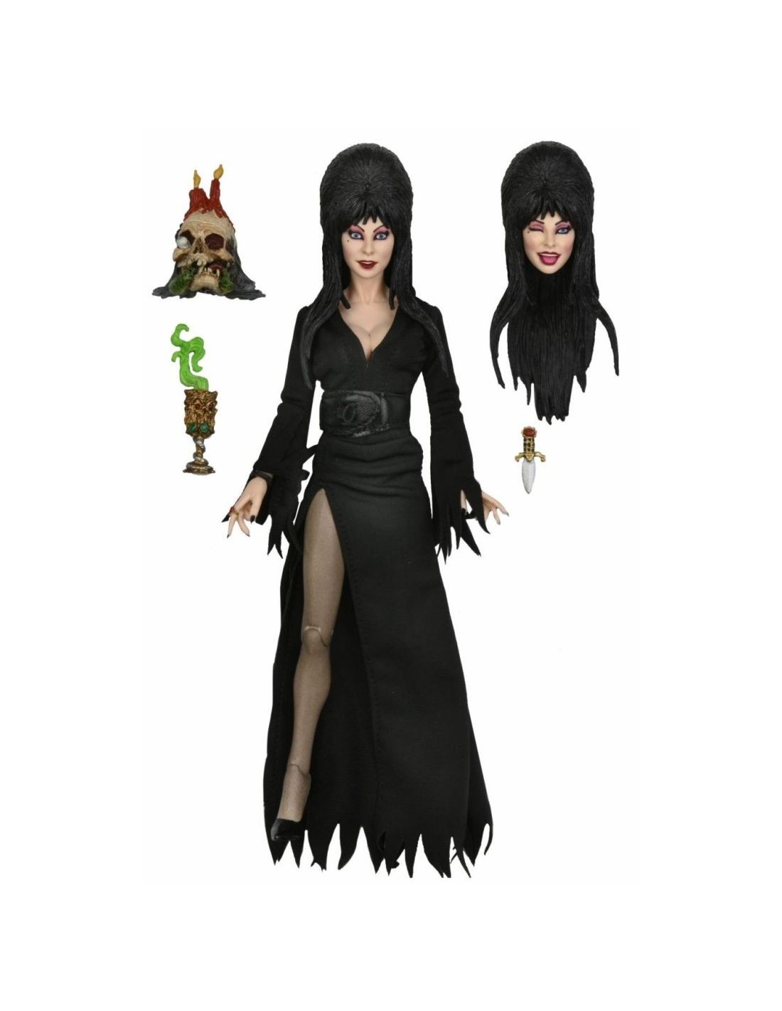 Bellissima action figure di Neca dedicata a Elvira, Mistress of the Dark! La figura ha dettagliati abiti in vera stoffa ed è dotata di accessori: testa intercambiabile, calice, tescio, pugnale, stand display.