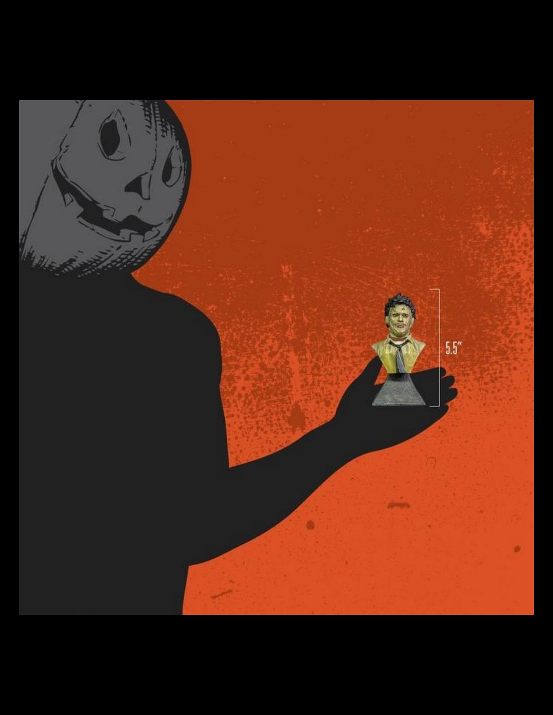 Sculpted by Alex Rey, every detail of Leatherface is represented in this highly detailed bust.