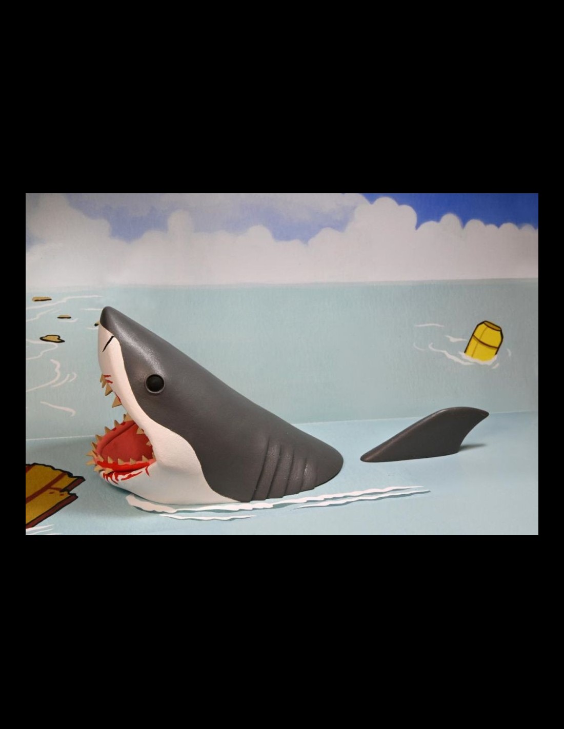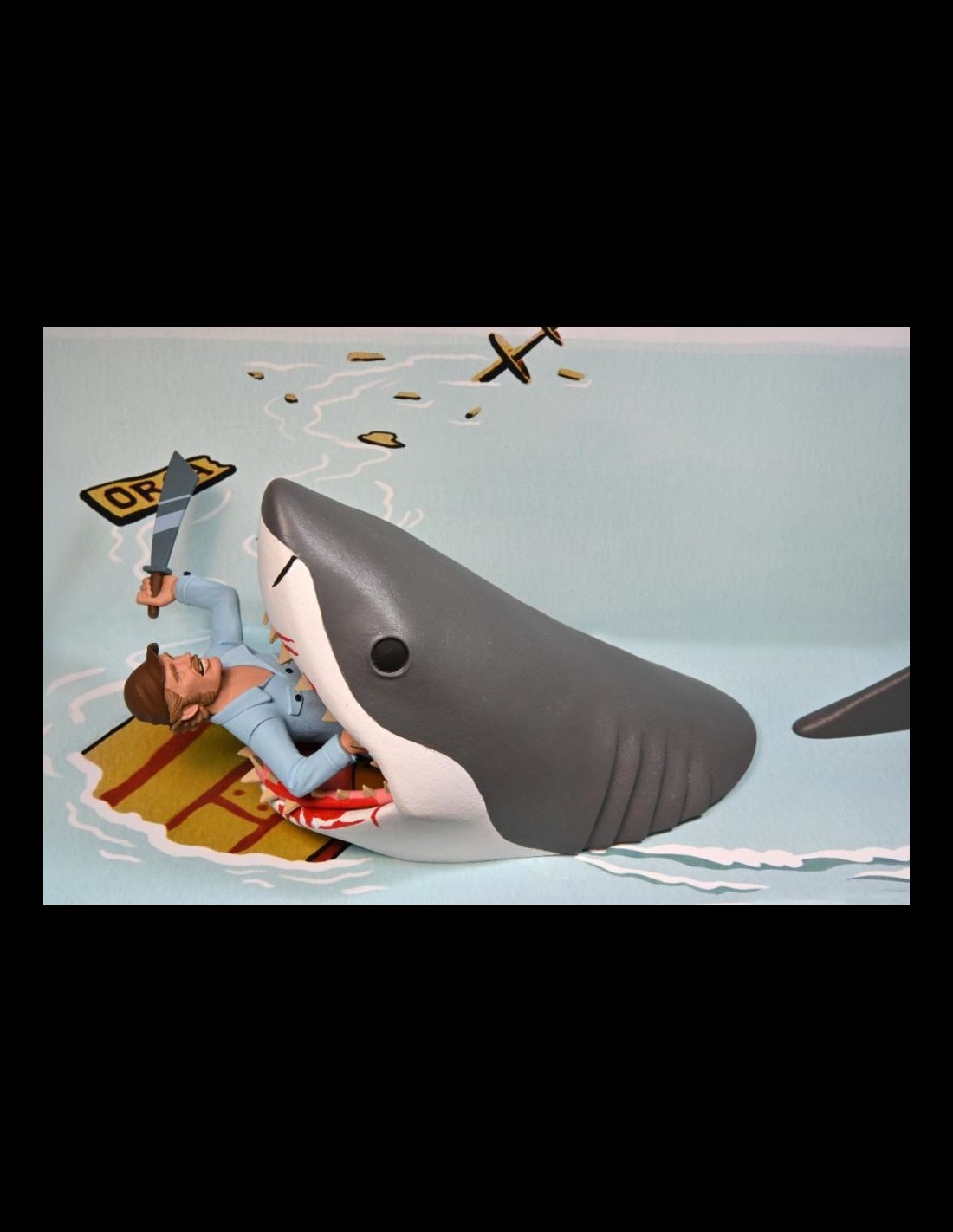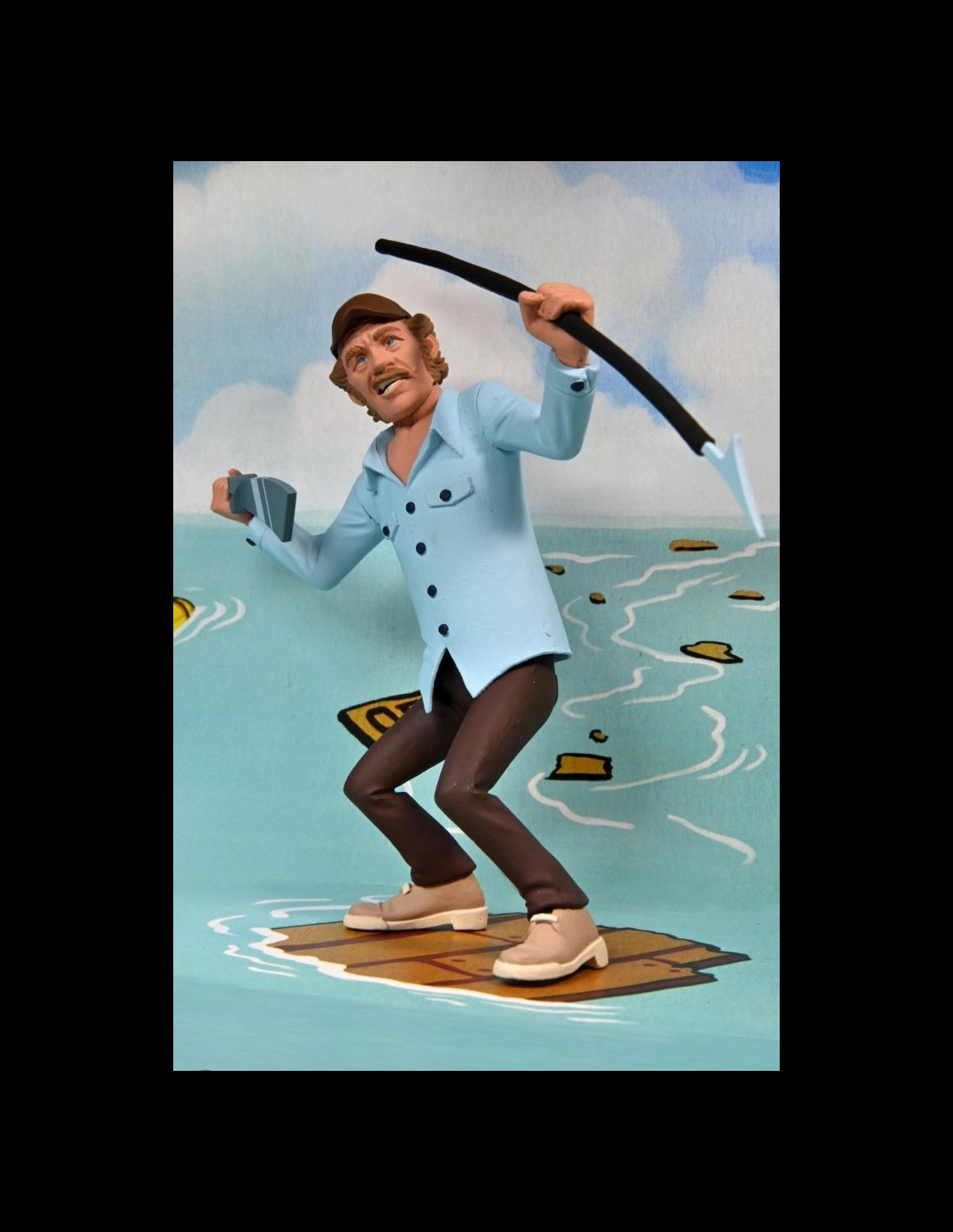 Quint e lo Squalo arrivano nella serie Toony Terrors di Neca! Nella scatola, oltre alle due action figures, troverete un machete e un arpione per Quint, una pinna per lo squalo e uno sfondo in cartoncino!