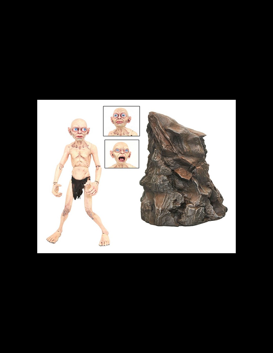A Diamond Select Toys release! Gollum gets the deluxe treatment in this new action figure release! Based on his appearance in the Lord of the Rings trilogy, Gollum comes packaged with multiple interchangeable heads, a rock formation to climb on, plus other bonus character accessories! Gollurn features 16 points of articulation, detailed sculpting and paint, and comes packaged in a full-color window box. Designed by Eamon O'Donoghue, sculpted by Gentle Giant Studios!