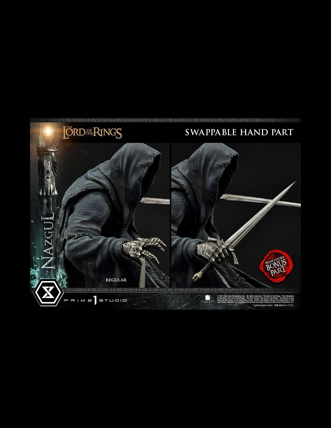 Prime 1 Studio aggiunge alla serie Premium Masterline Lord Of The Rings, la statua The Nazgul. Realizzata con grande precisione di dettagli e pittura, la scultura è ispirata ai Nazgul della trilogia di Peter Jackson con base a tema. Questa versione con Bonus include mano destra intercambiabile e la Lama di Morgul.