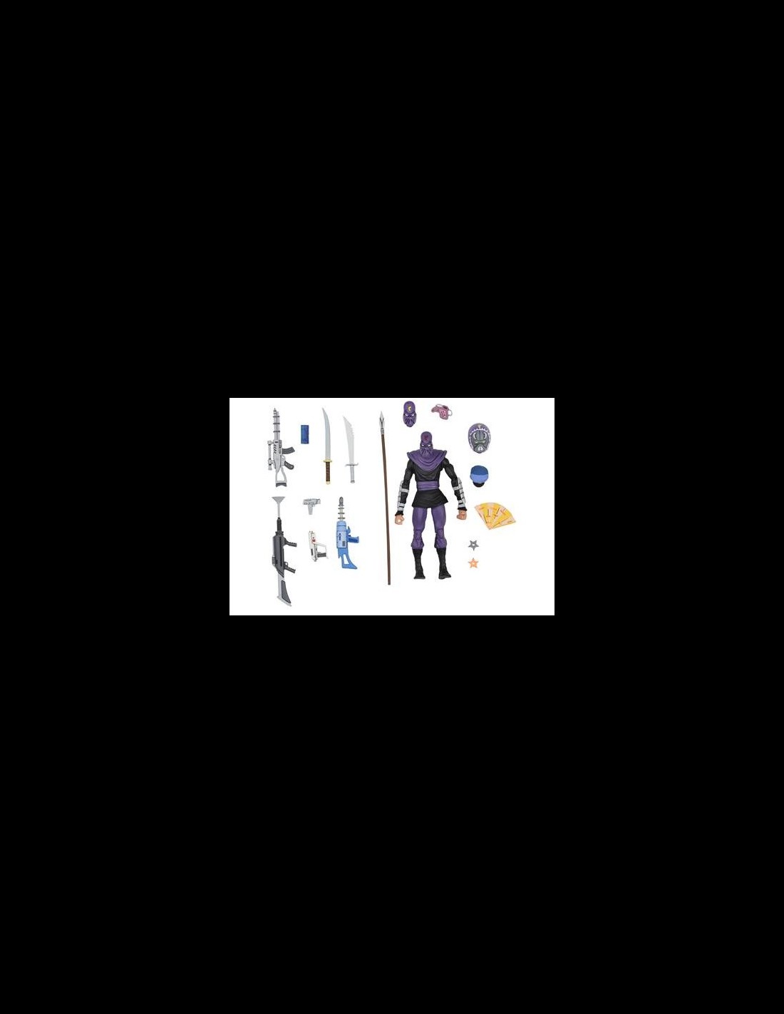 Dalla serie a cartoni animati delle Tartarughe Ninja ecco l'action figure Deluxe del Foot Soldier! La figura ha a sua disposizione un vero e proprio arsenale di armi, oltre a due teste intercambiabili, un ventaglio e altro ancora. Da non perdere!