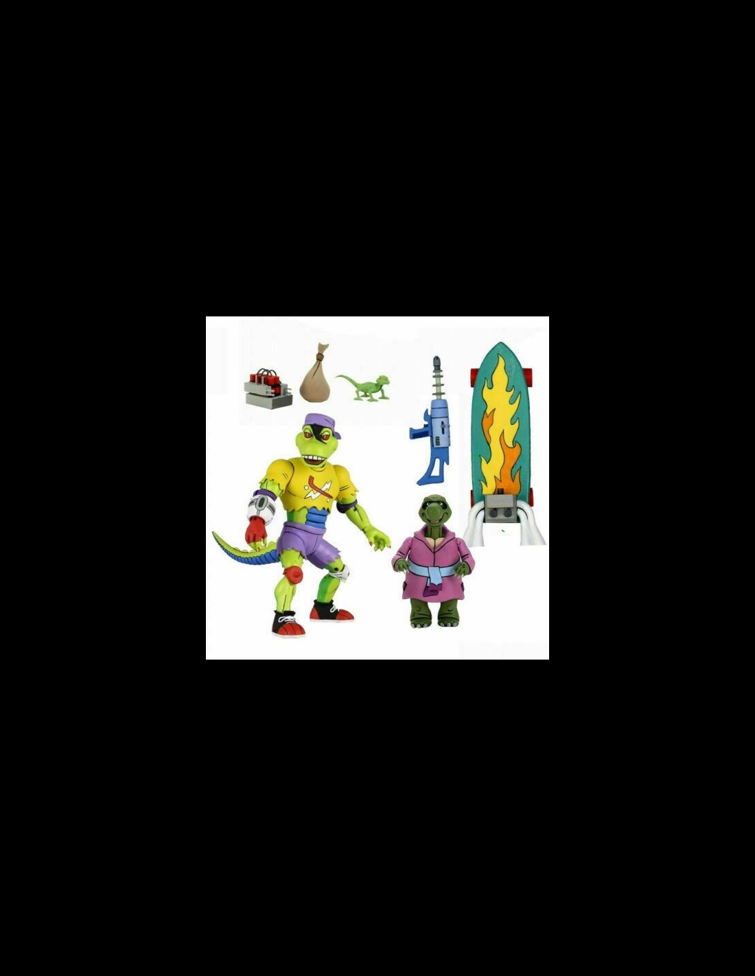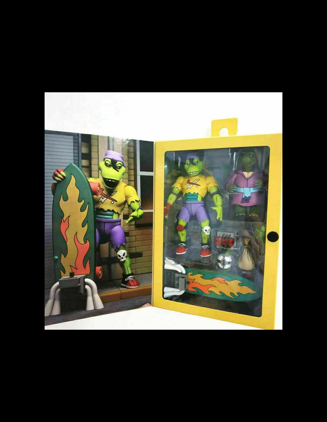 Dalla serie a cartoni animati anni '80 delle Tartarughe Ninja ecco Mondo Gecko! La figura, in versione Ultimate, dispone di numerosi accessori: blaster, gauntlet, skateboard con ruote funzionanti, mani ntercambiabili e altri ancora!