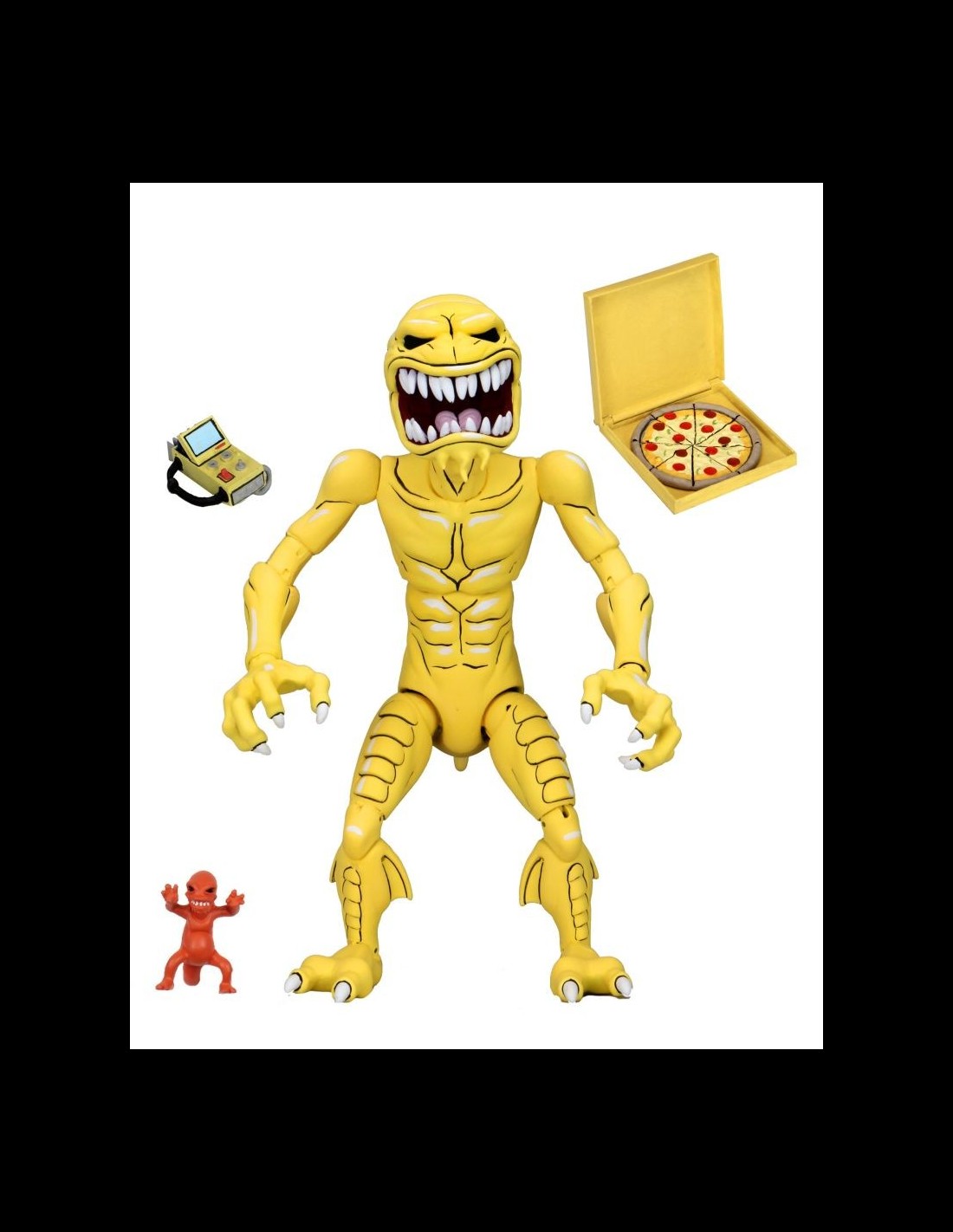 Dalla serie a cartoni anni '80 della Tartarughe Ninja, ecco l'action figure Ultimate del Pizza Monster! Nella scatola, oltre alla figura del Pizza Monster, troverete una scatola con pizza e la mini figura del Pizza Monster da piccolo.