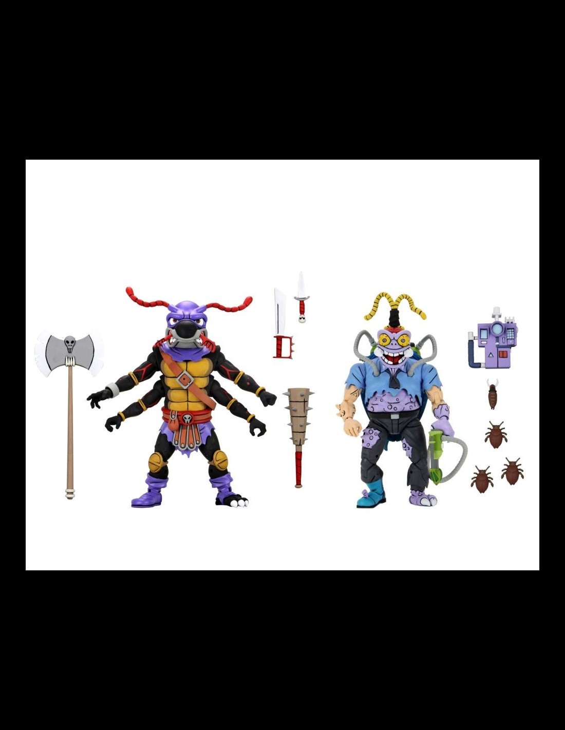 Nuovo 2-pack di Neca ispirato alla serie di cartoni animati anni '80 delle Tartarughe Ninja! Nel box troverete le figure di Antrax e Scumbug, entrambe articolate e dotate di accessori.