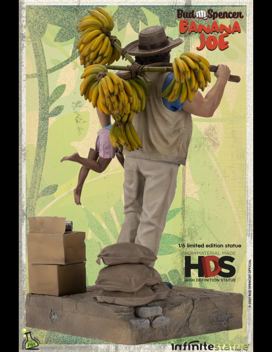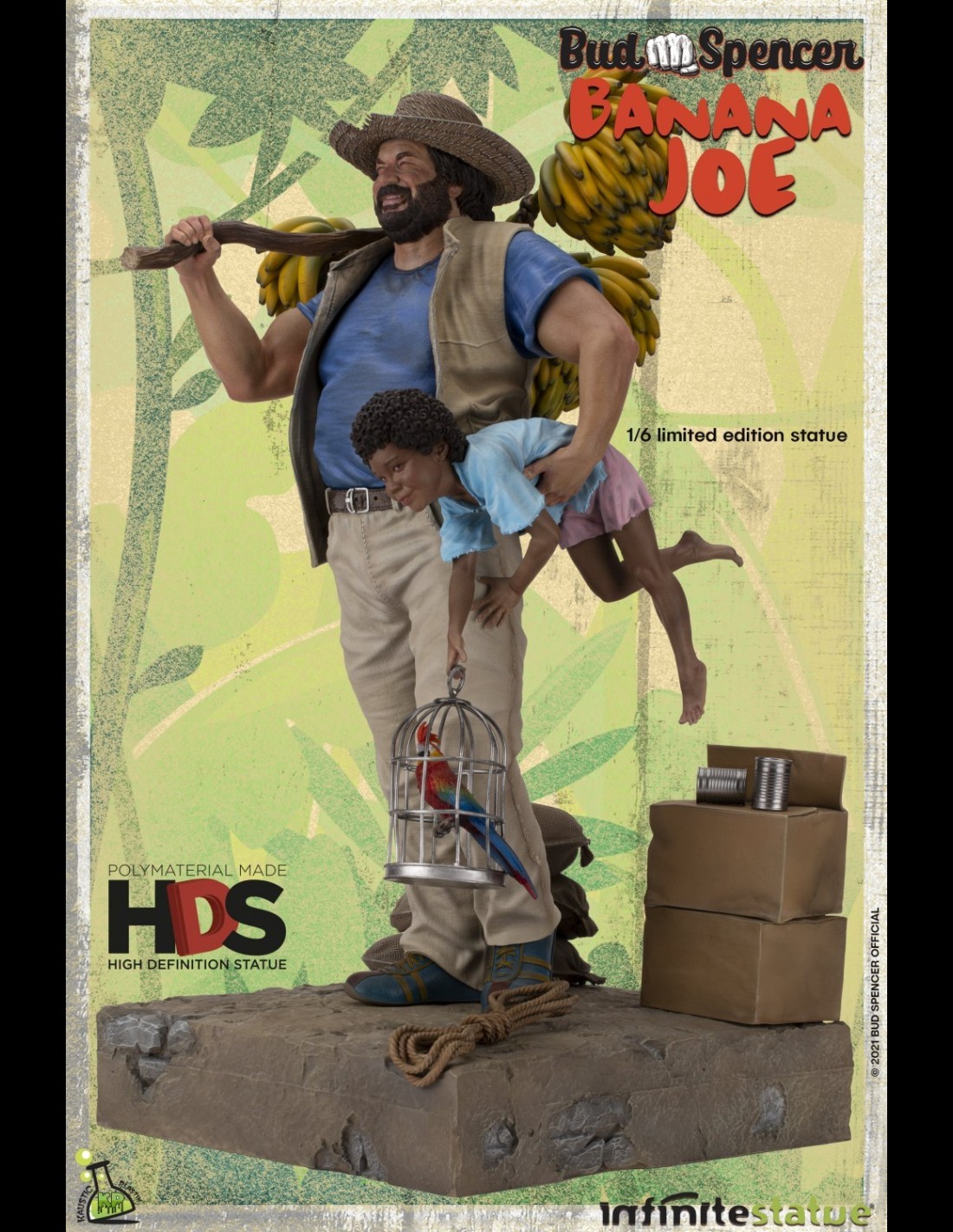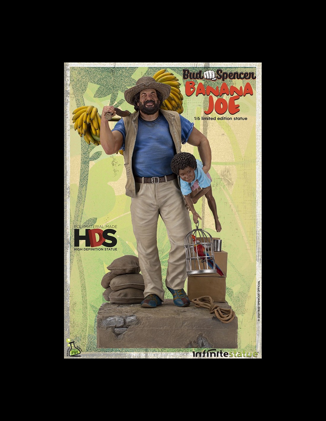 Banana Joe rappresenta l’apice dell' immagine di Bud Spencer che tutti i fan hanno da sempre nel cuore, è il Bud solare e strabordante di gioia di vivere. Con questa scultura di rara bellezza ancora una volta si rende omaggio al personaggio italiano più amato nel mondo. Ricca di dettagli e ricercata nei particolari, ecco una statua che spinge verso l’alto la massima qualità delle opere di Infinite Statue.