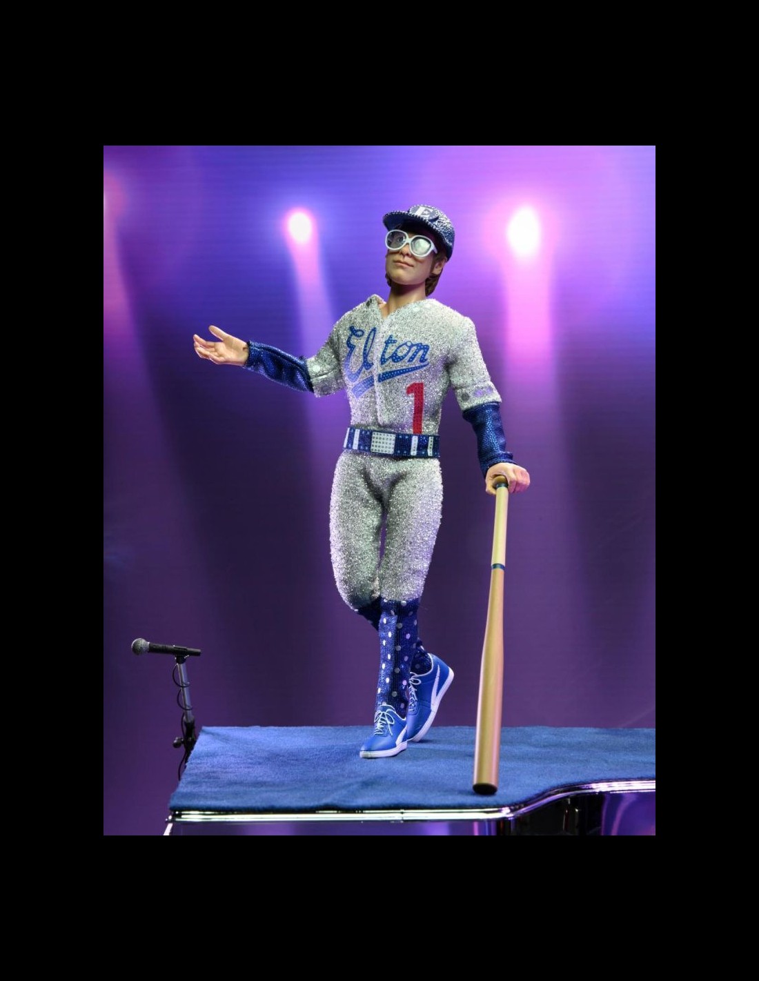 L'action figure di Elton John Live nel '75 è alta 20,3 cm e sfoggia uno dei suoi costumi di scena più famosi: l'elegante uniforme da baseball dei suoi concerti dell'ottobre 1975 al Dodger Stadium di Los Angeles. Questi sono stati i più grandi concerti mai eseguiti da un artista solista all'epoca, e abbiamo fatto di tutto per commemorare quell'occasione fondamentale con un pianoforte in scala come è apparso durante lo spettacolo!