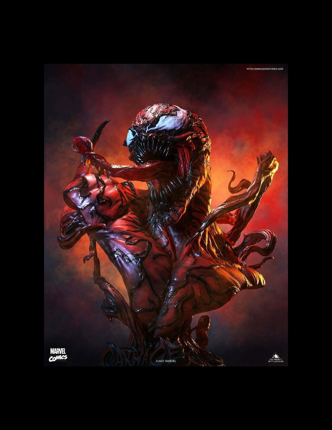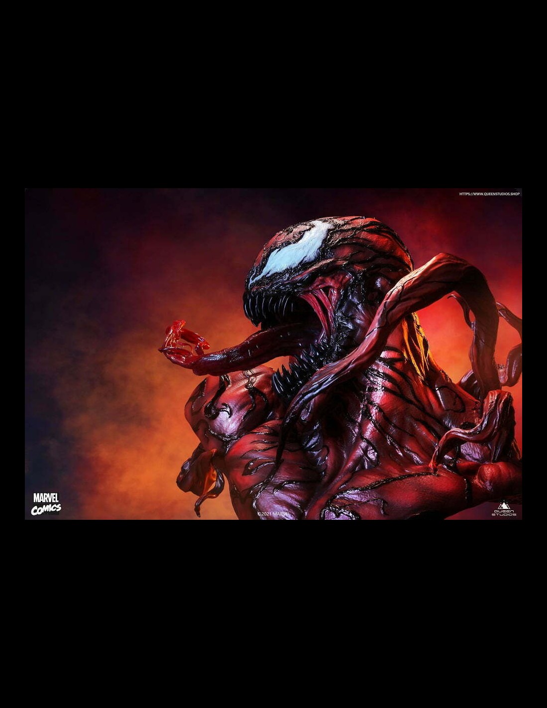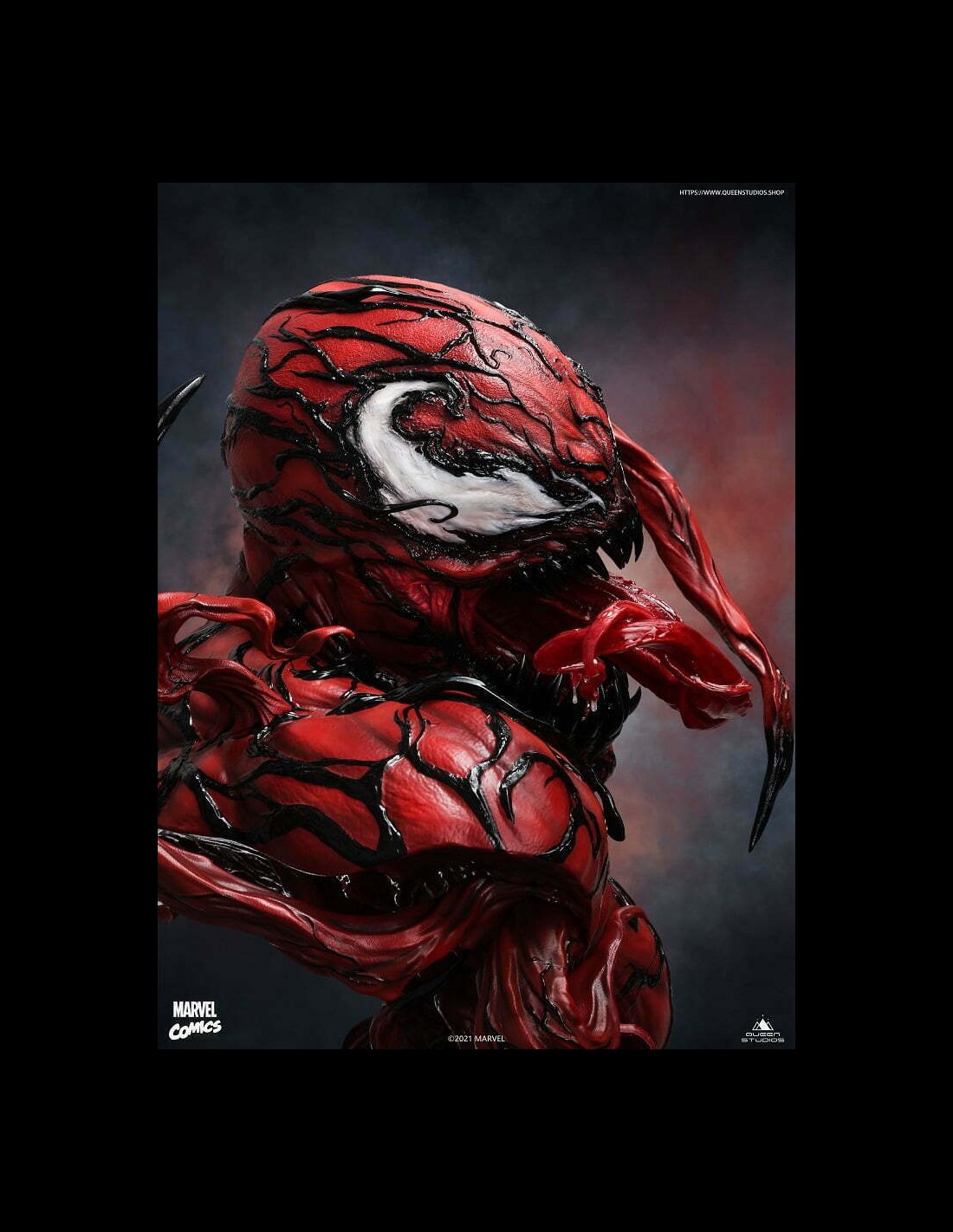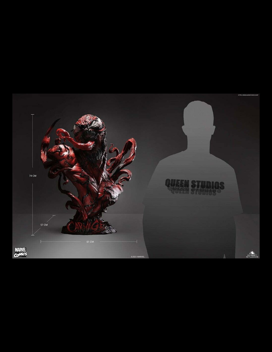 Il busto a grandezza naturale di Carnage in scala 1/1 dei Queen Studios dà vita al simbionte con un tentacolo aguzzo che circonda il suo viso pochi istanti prima di un attacco. Gli occhi del mostro sono bianchi come l'osso, la sua bocca è spalancata e la sua lingua sta uscendo, pronta a catturare la sua prossima vittima. Il busto è limitato a soli 536 pezzi al mondo, alto 75 cm ed è modellato da una variante di copertina del numero 5 della superba serie Marvel Absolute Carnage. I Queen Studios sono entusiasti di dirvi ragazzi che questo busto 1/1 Carnage a grandezza naturale sarà una controparte del nostro busto 1/1 Venom a grandezza naturale che dà vita a Eddie Brock nei panni di Venom che trovate nel nostro sito www.sisco78.com.