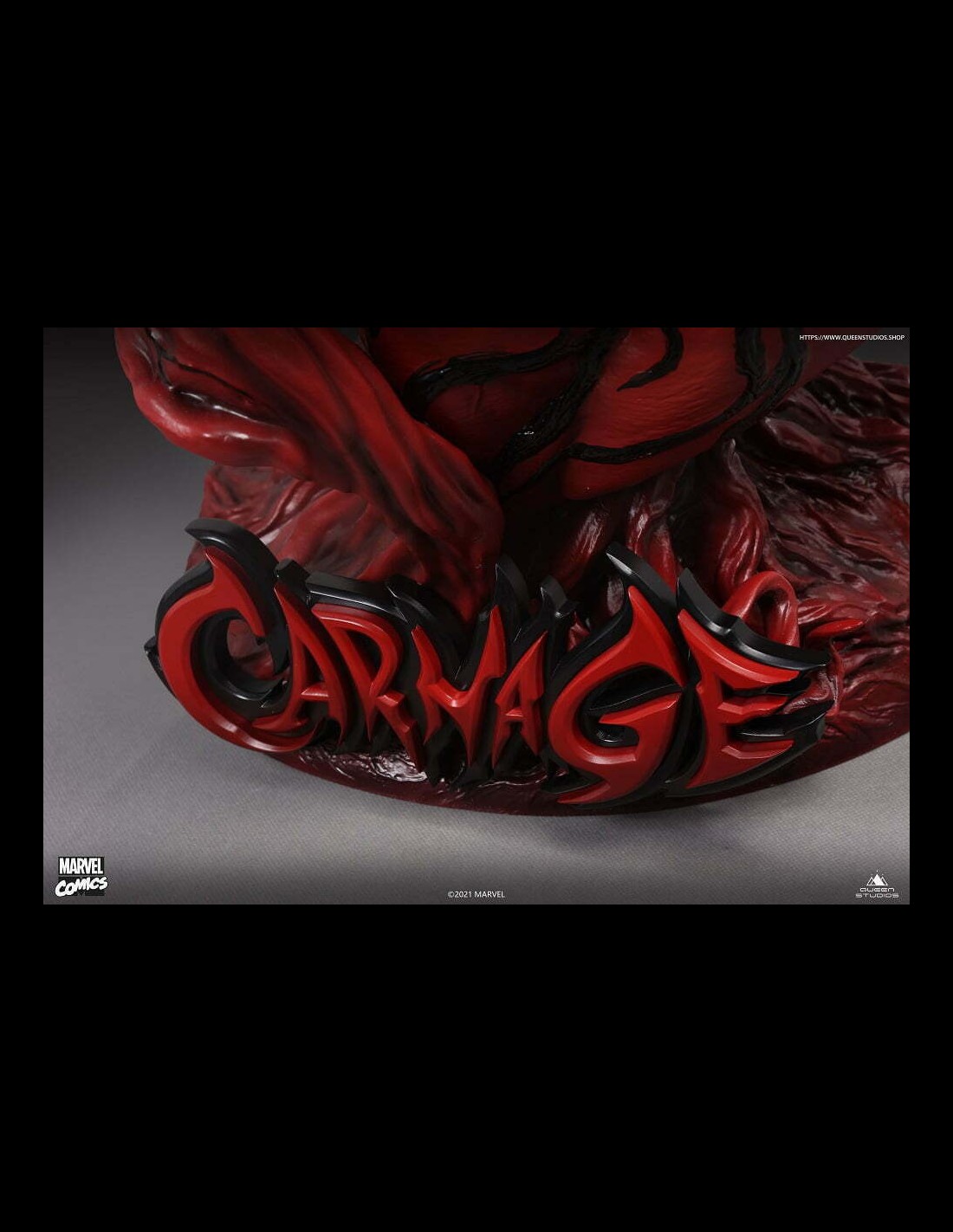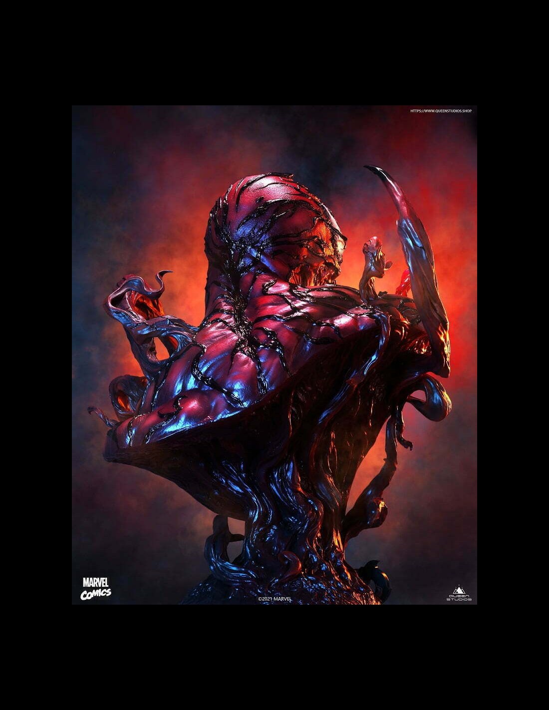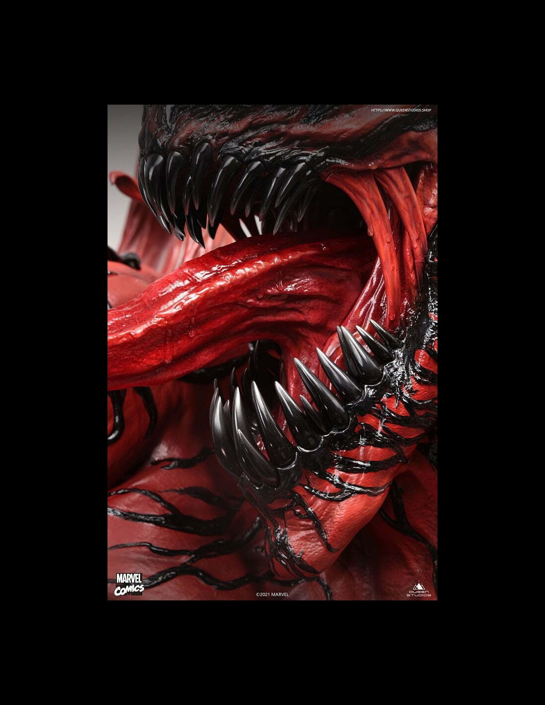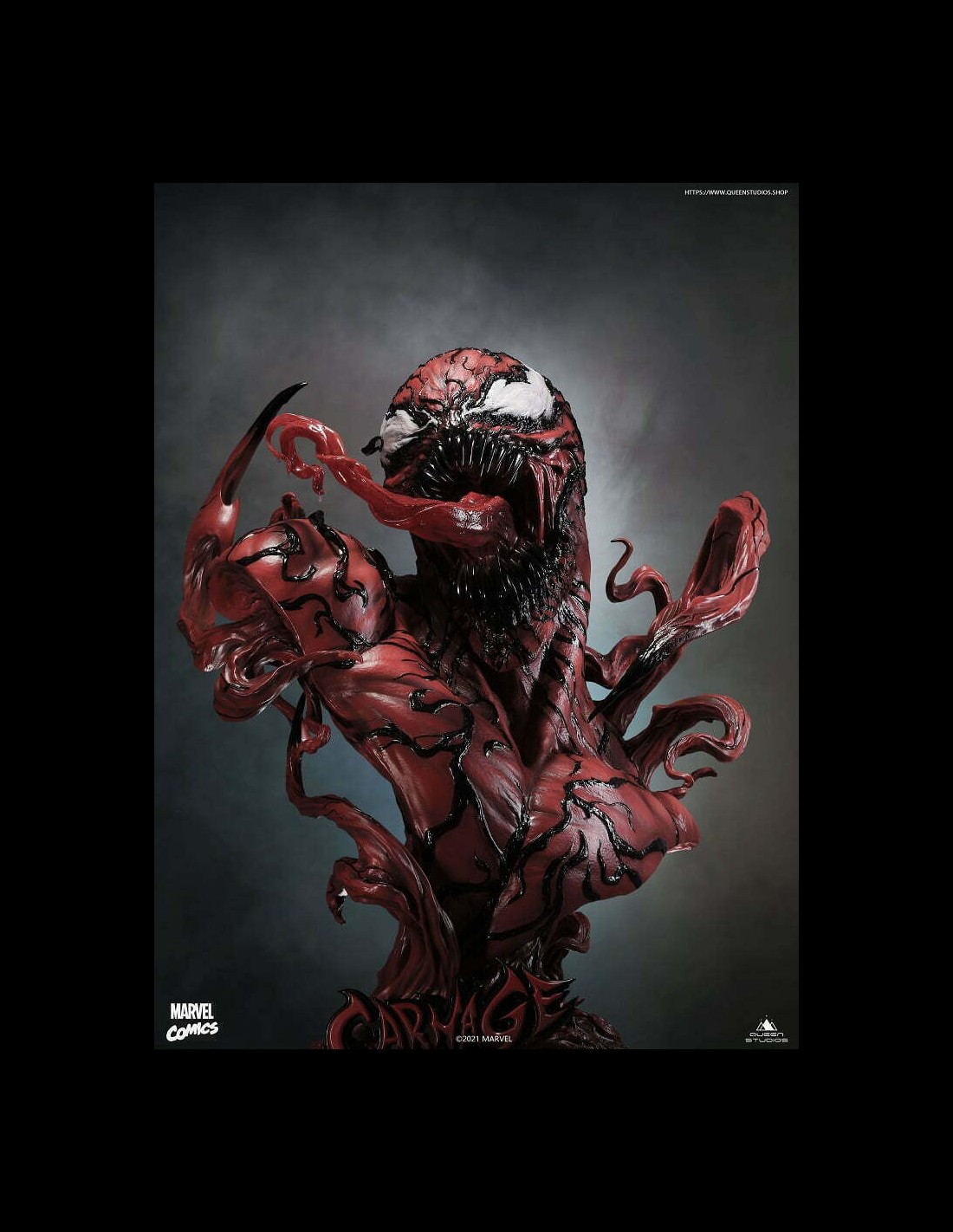 Il busto a grandezza naturale di Carnage in scala 1/1 dei Queen Studios dà vita al simbionte con un tentacolo aguzzo che circonda il suo viso pochi istanti prima di un attacco. Gli occhi del mostro sono bianchi come l'osso, la sua bocca è spalancata e la sua lingua sta uscendo, pronta a catturare la sua prossima vittima. Il busto è limitato a soli 536 pezzi al mondo, alto 75 cm ed è modellato da una variante di copertina del numero 5 della superba serie Marvel Absolute Carnage. I Queen Studios sono entusiasti di dirvi ragazzi che questo busto 1/1 Carnage a grandezza naturale sarà una controparte del nostro busto 1/1 Venom a grandezza naturale che dà vita a Eddie Brock nei panni di Venom che trovate nel nostro sito www.sisco78.com.