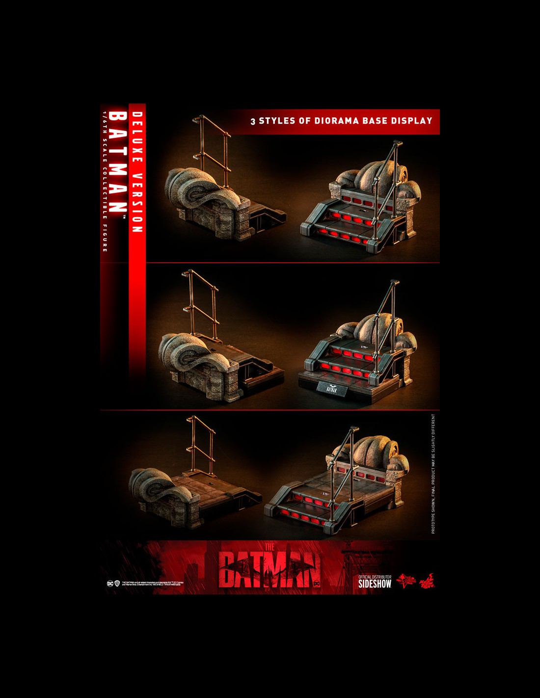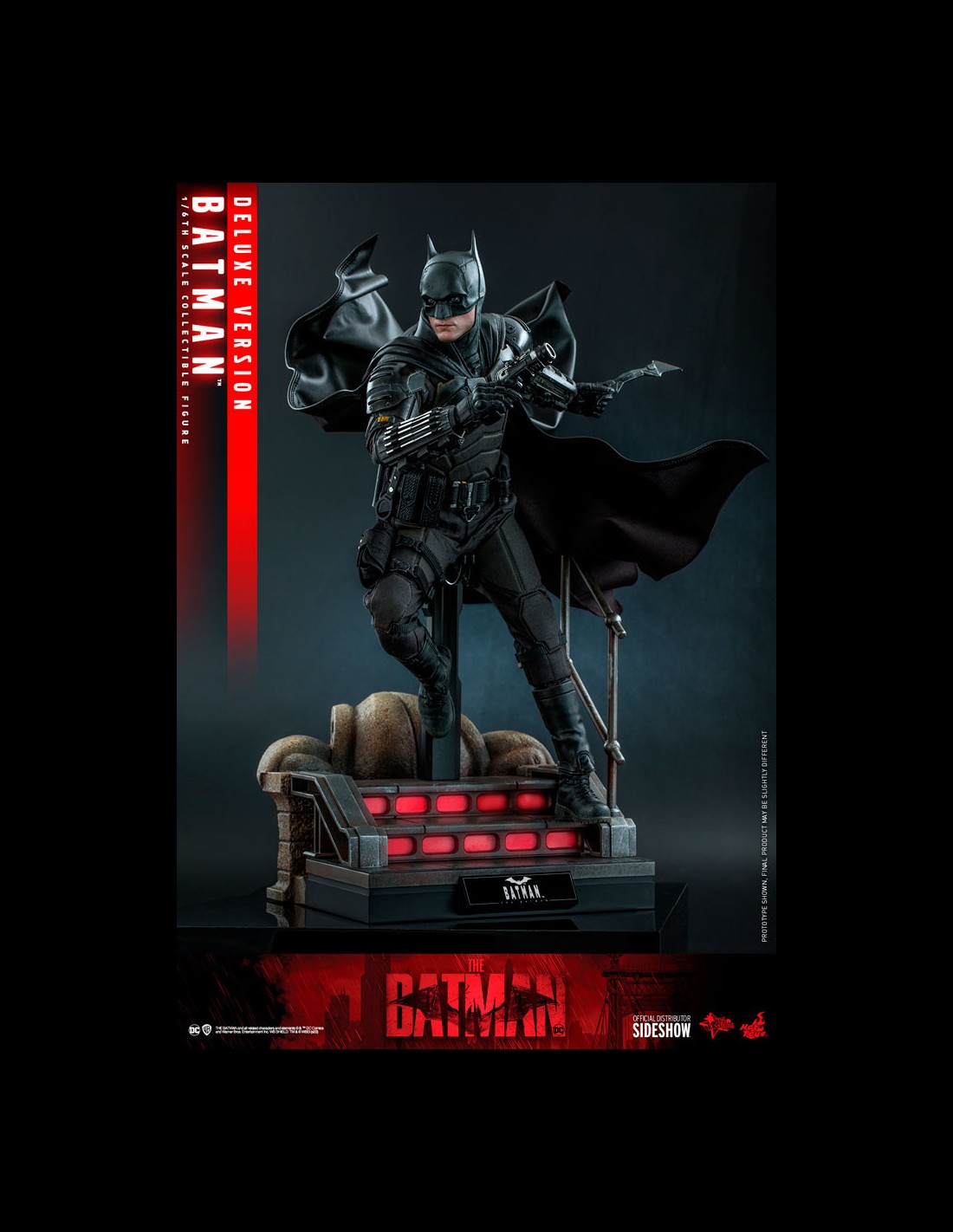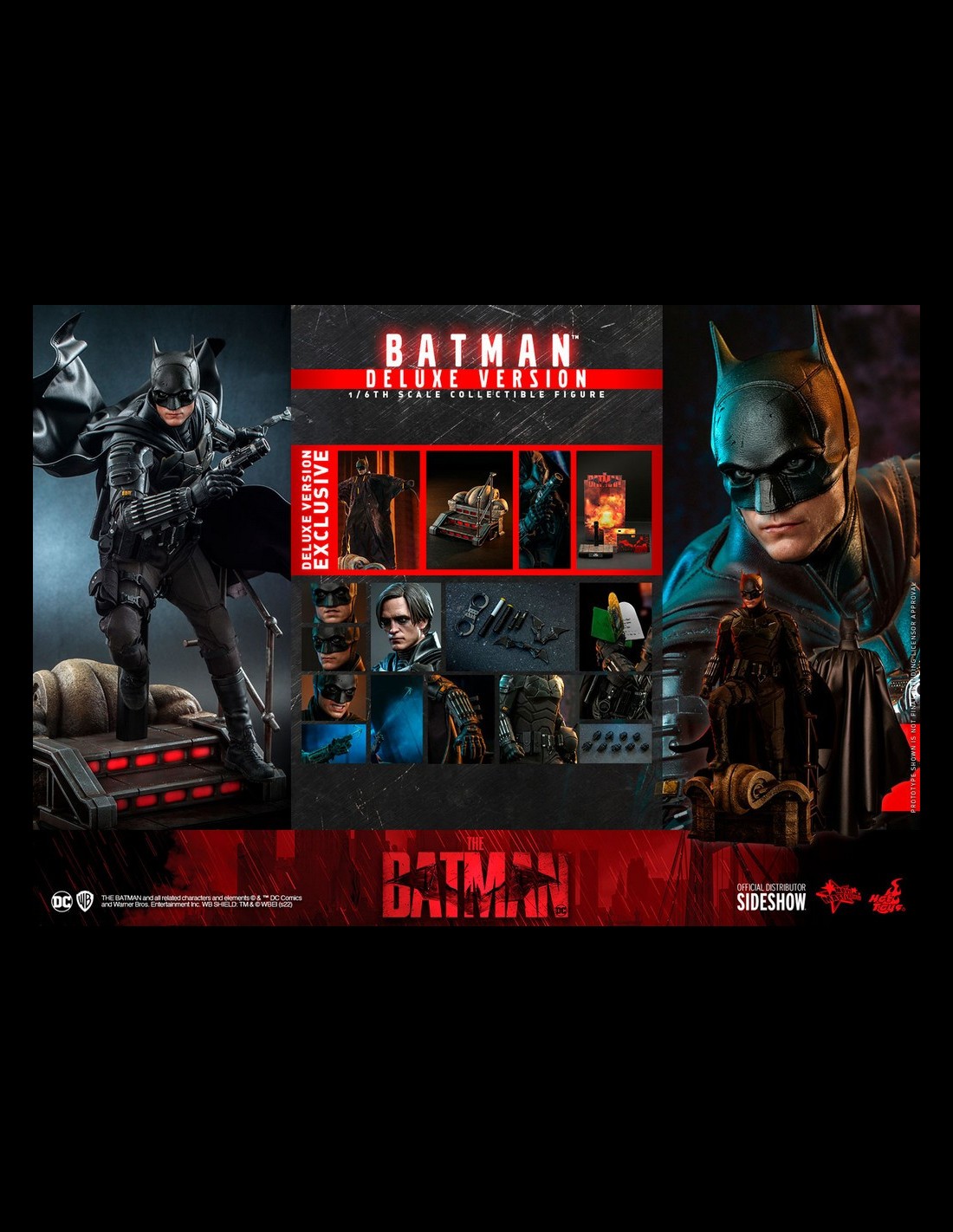 Con l'uscita del film The Batman, Sideshow e Hot Toys sono entusiasti di presentare la figura da collezione in scala 1:6 di Batman (versione Deluxe), che viene fornita con tuta alare e accessori per l'installazione integrata.