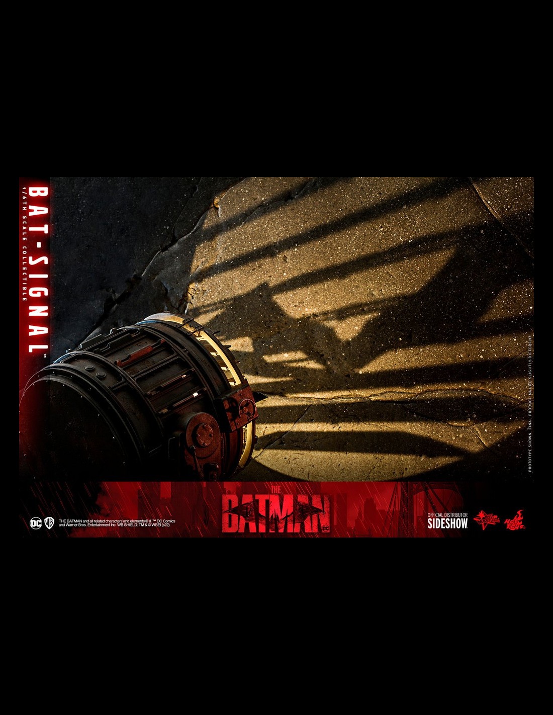 L'iconico cartello avverte i malfattori che Batman si nasconde nell'ombra per proteggere le strade di Gotham City: il Bat-Segnale! Basato sull'ultima uscita del film DC, The Batman, Sideshow e Hot Toys sono entusiasti di presentare l'accessorio per figure in scala 1:6 Bat-Segnale che può proiettare il biglietto da visita di Batman sui muri.