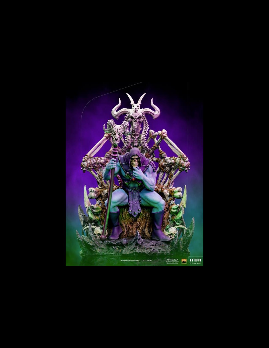 Questa scultura dedicata a skeletor non solo riesce ad immortalare appieno il personaggio ma dà vita ad una vero capolavoro di scultura presentando il personaggio seduto su un intricatissimo trono di ossa e teschi.