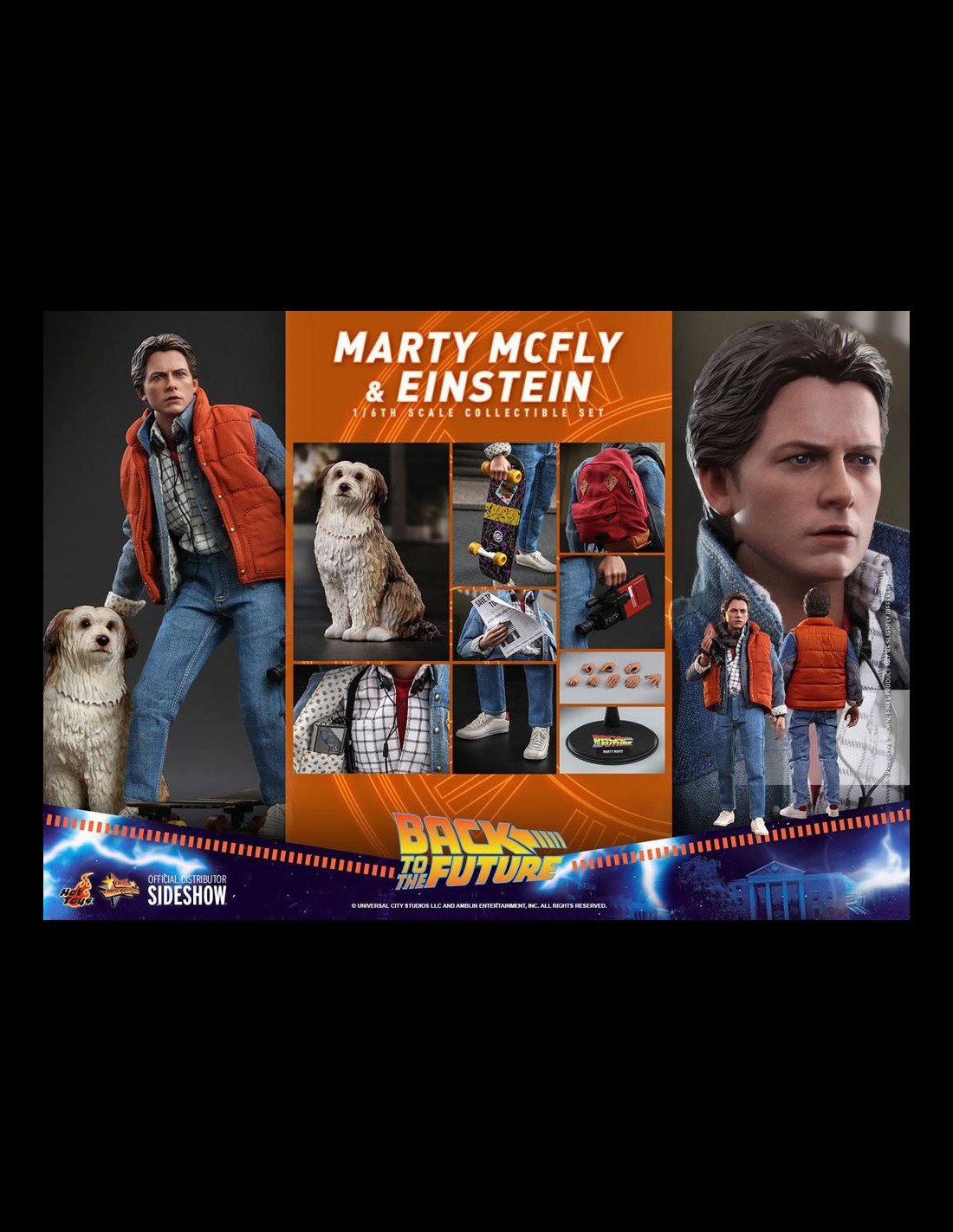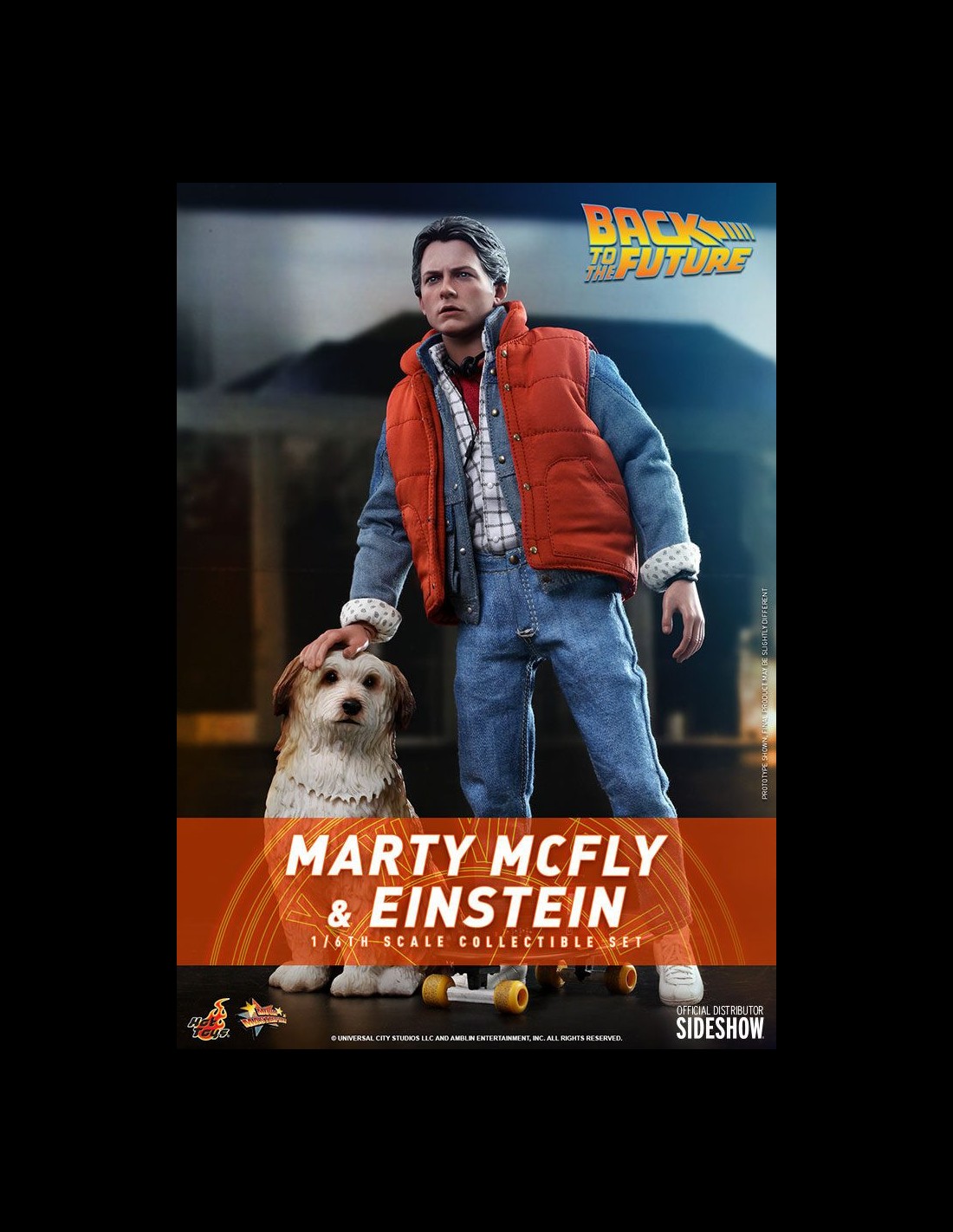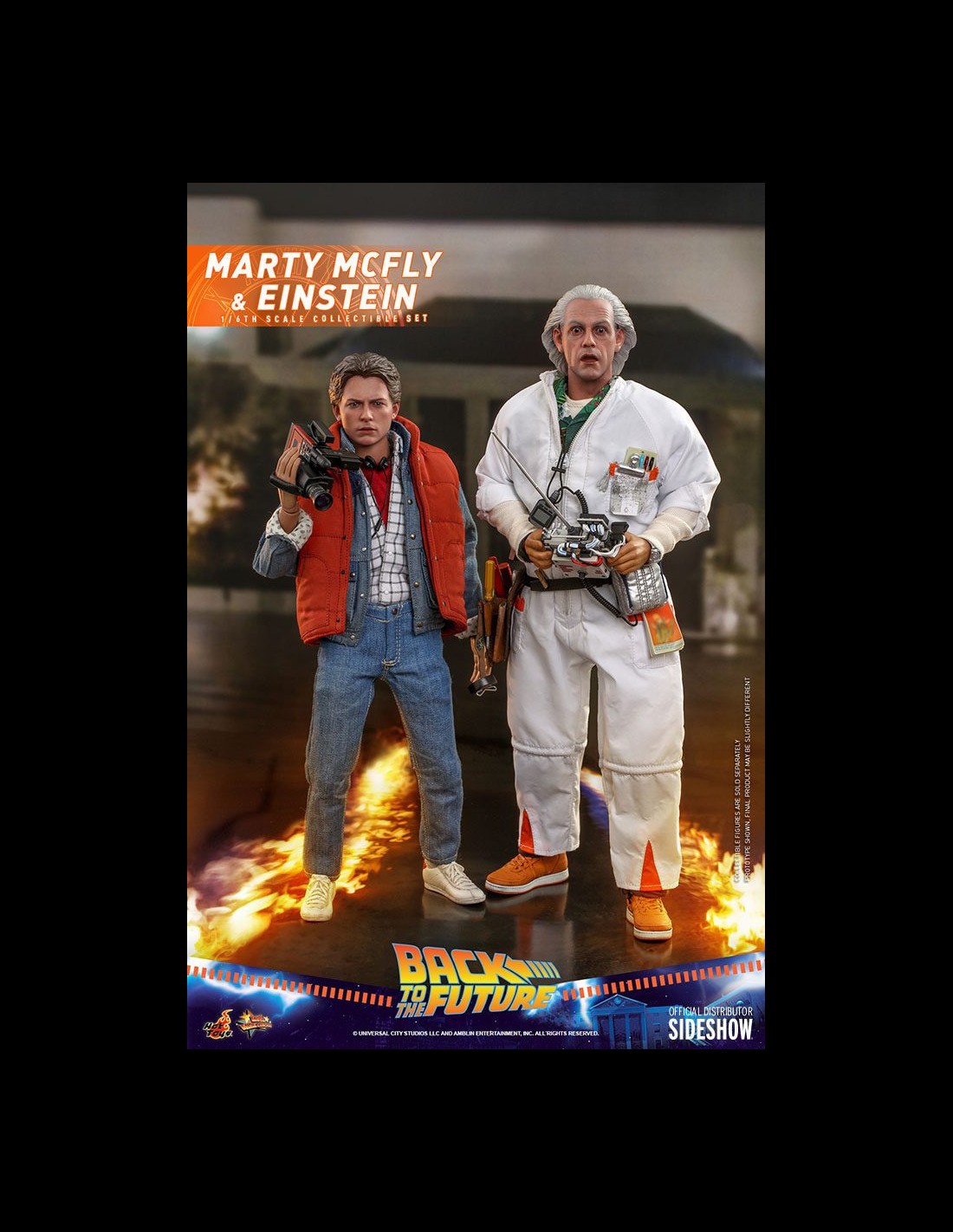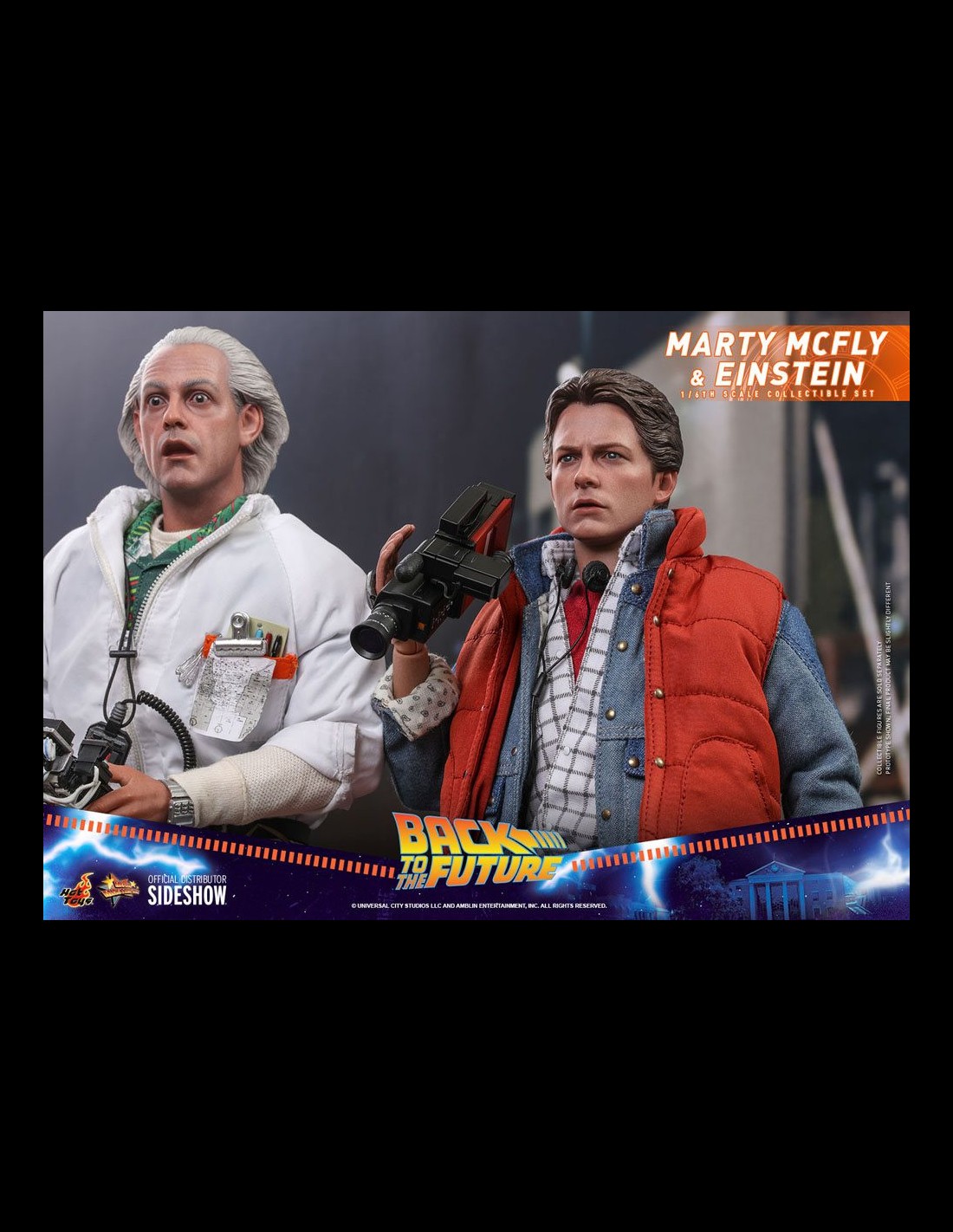 Dopo l'introduzione ufficiale del personaggio da collezione Doc Drown in scala 1:6 di Hot Toys, Sideshow e Hot Toys presentano il set da collezione in scala 1:6 di Marty McFly ed Einstein, disponibile solo in mercati selezionati.