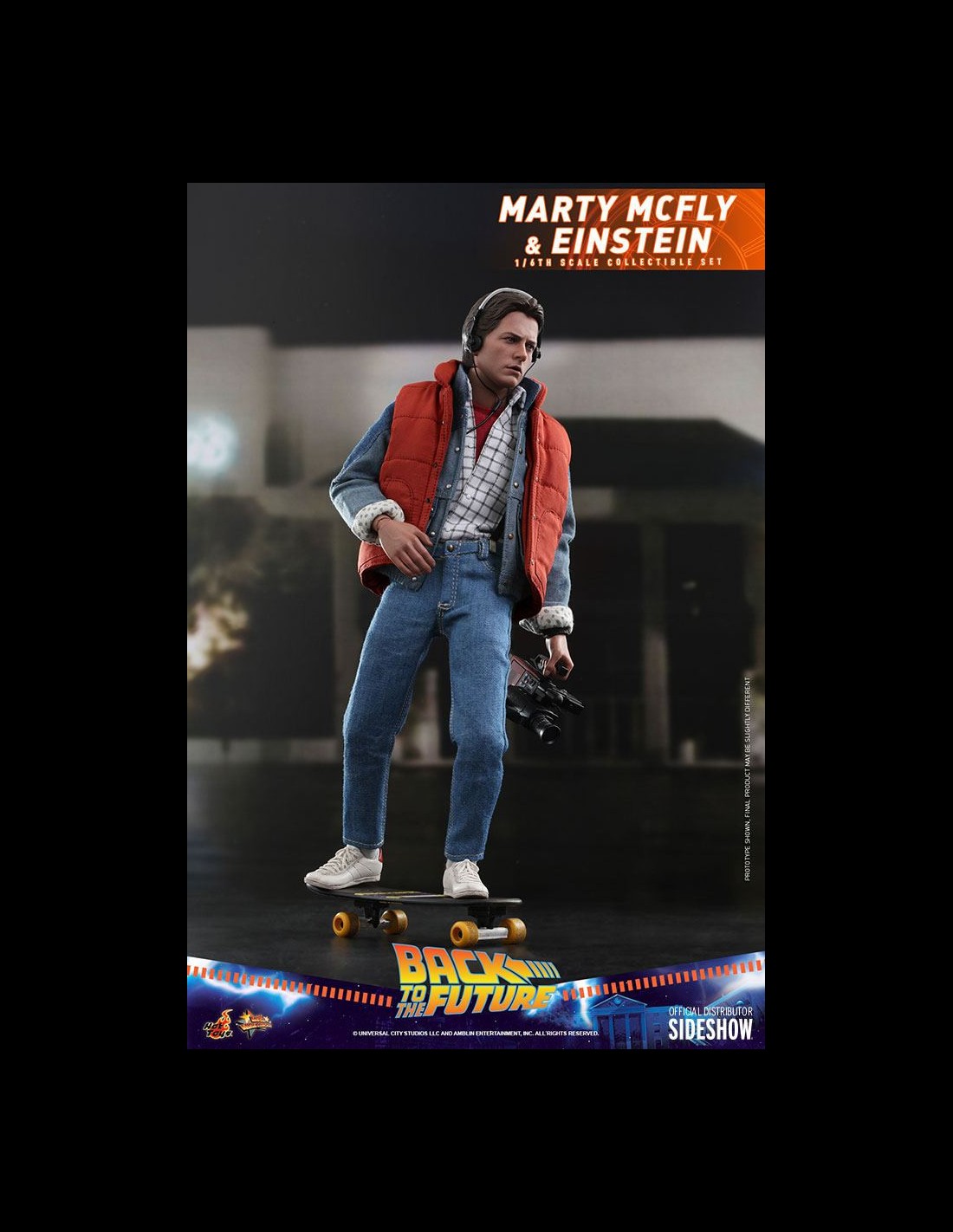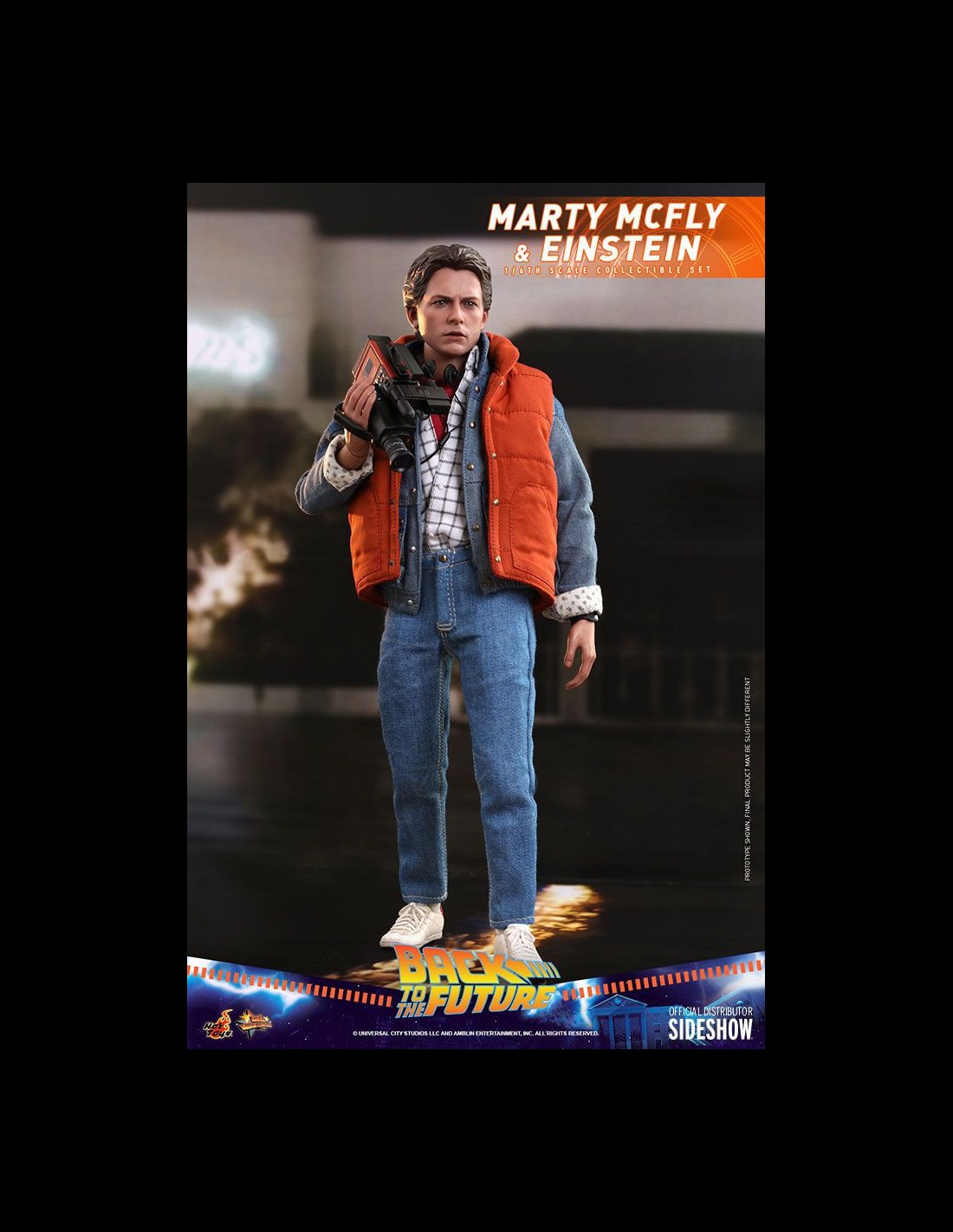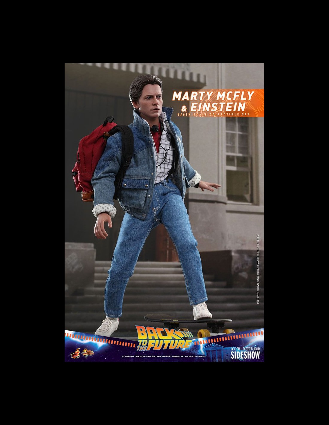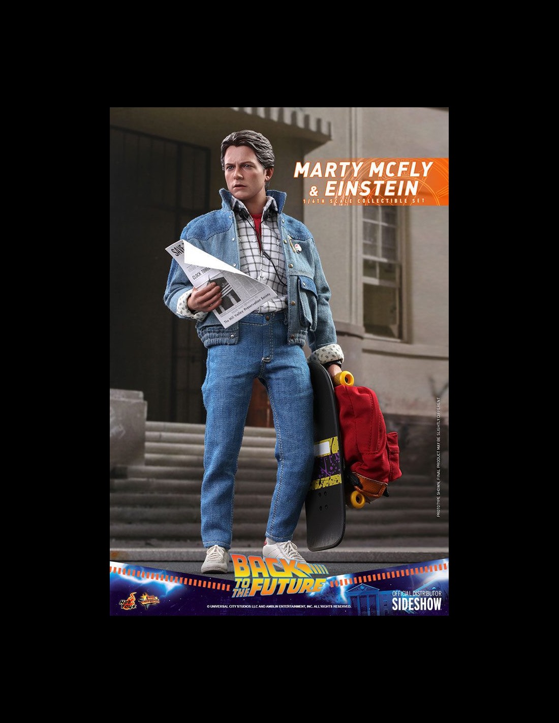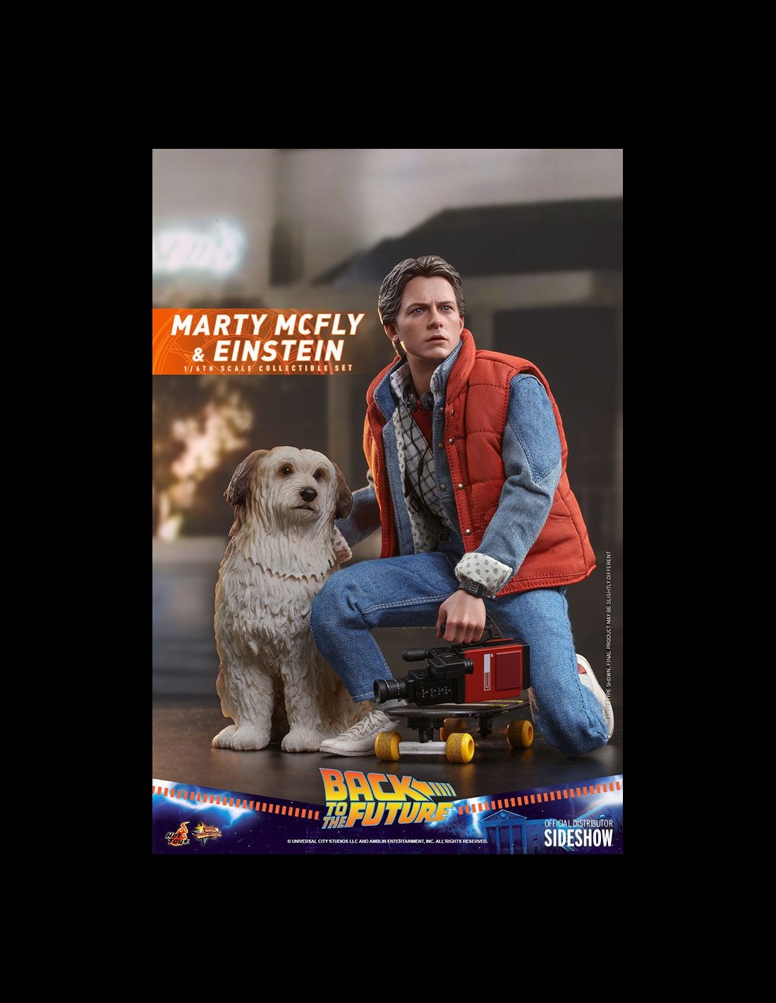 Dopo l'introduzione ufficiale del personaggio da collezione Doc Drown in scala 1:6 di Hot Toys, Sideshow e Hot Toys presentano il set da collezione in scala 1:6 di Marty McFly ed Einstein, disponibile solo in mercati selezionati.
