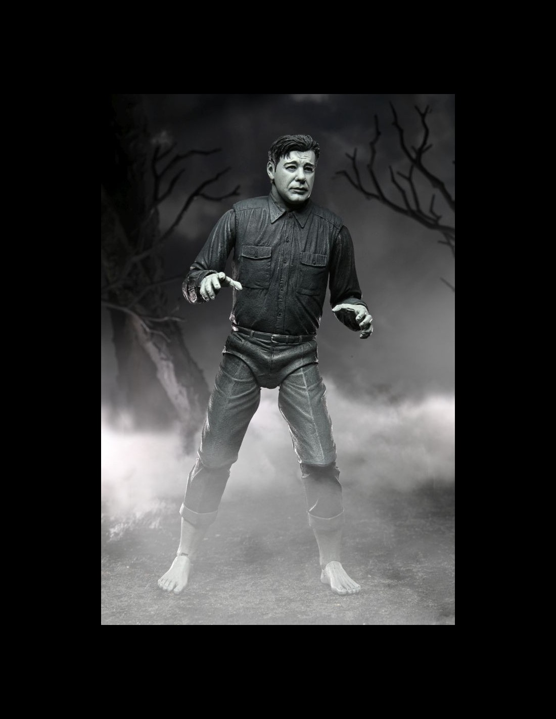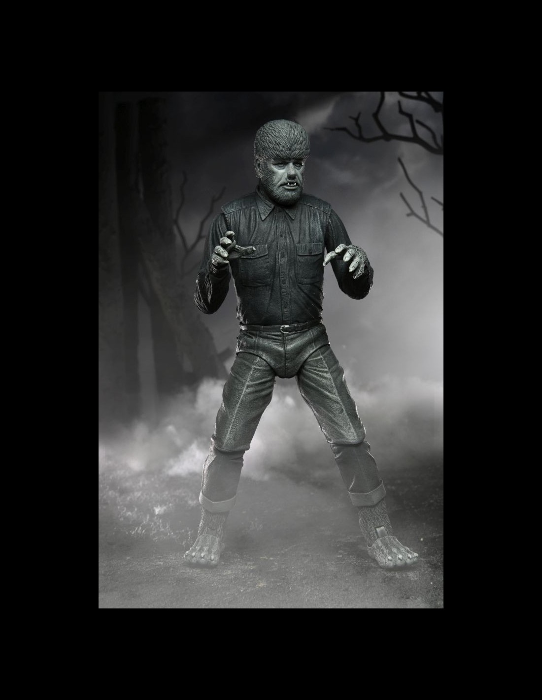 Neca celebra l'ottantesimo anniverasrio del film "L'uomo lupo", del 1941, con questa action figure Ultimate Black&White! Il film, magistralmente interpretato da Lon Chaney Jr, è una pietra miliare della storia del cinema. L'action figure è perfettamente dettagliata e dispone di mani e teste intercambiabili (grazie alle quali potrete esporlo in versione umana o mostruosa) e altri accessori.