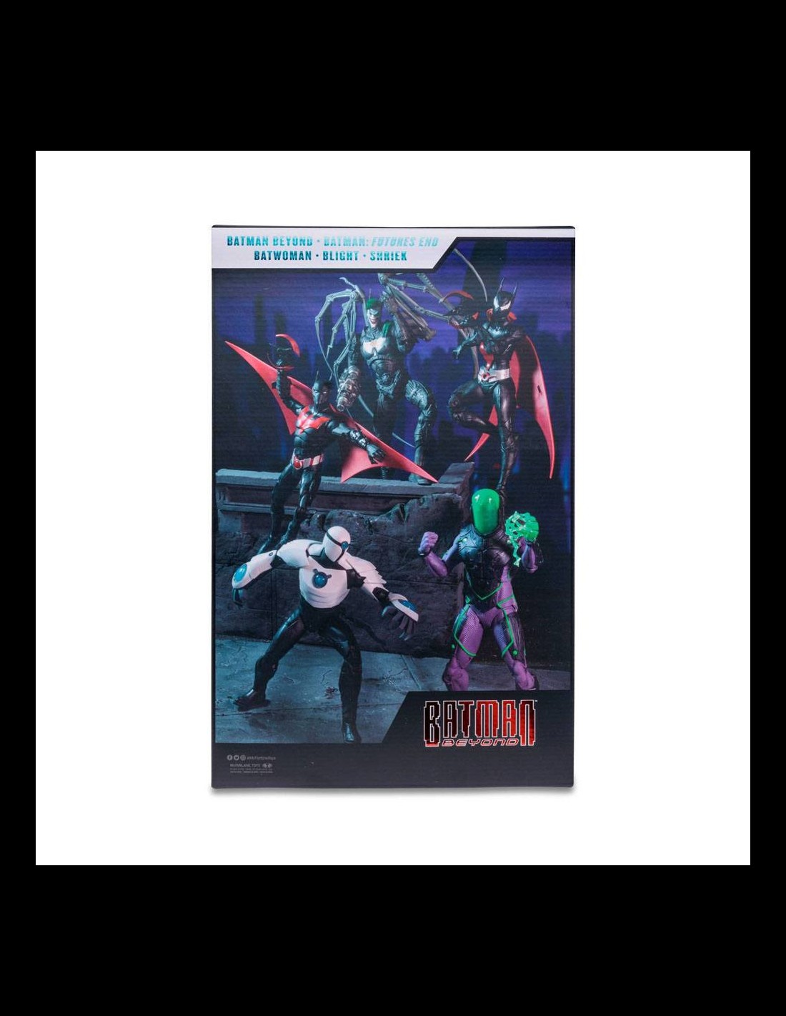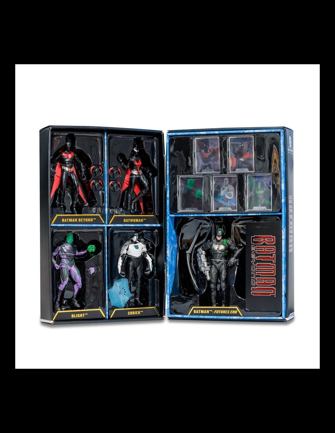 A deluxe collector's pack that contains all 5 Batman Beyond Build-A figures; Batman Beyond, Batwoman Beyond, Blight, Shriek, and Batman: Futures End, complete with their art cards and accessories, in a foil window box packaging that folds open to display. Figure is based on the Batman Beyond comic.