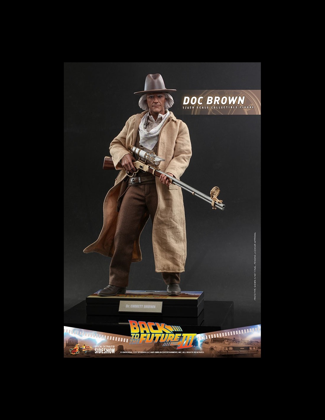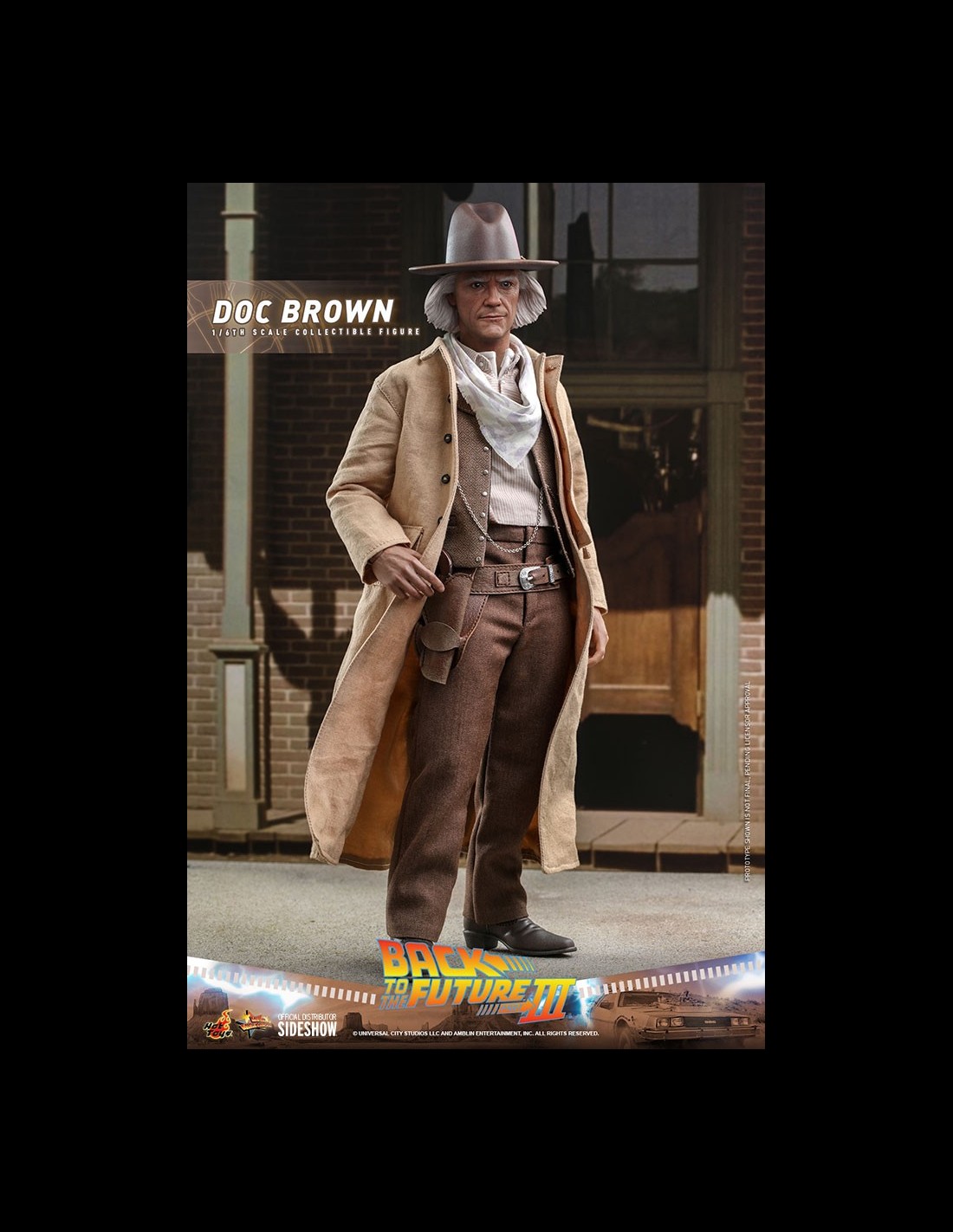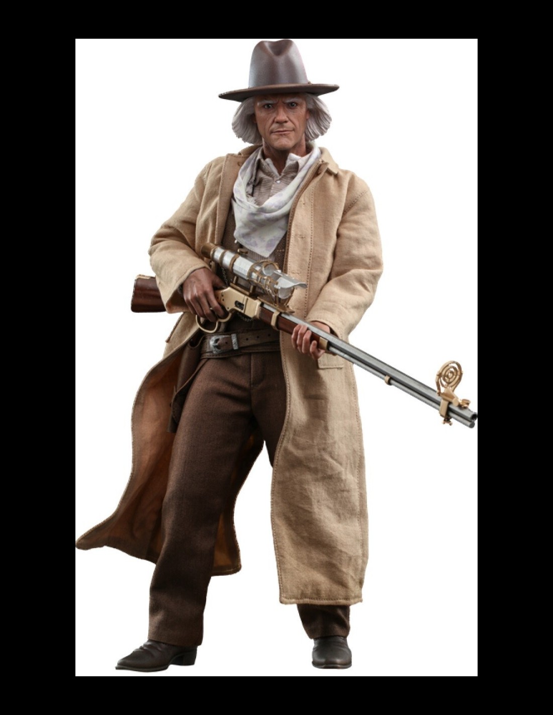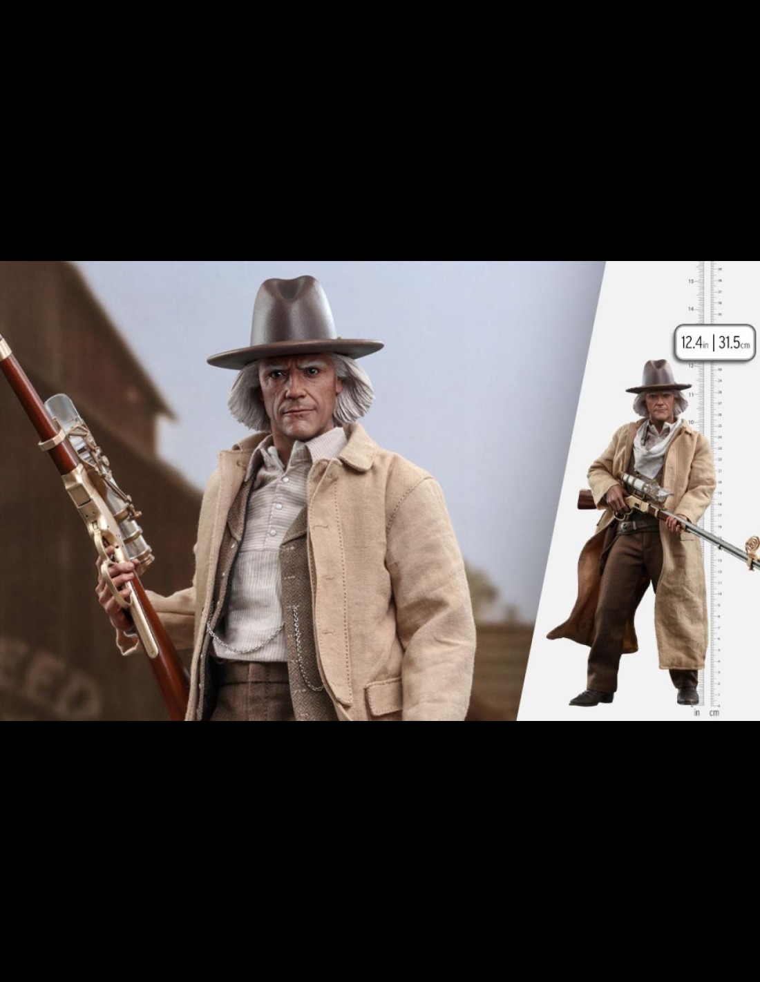 Beautifully crafted based on the appearance of Christopher Lloyd in the old west as Dr. Emmett Brown in the movie, the latest Doc Brown collectible figure features a newly developed head sculpt with cowboy hat, greatly detailed costume with refined tailoring, the coat and scarf to recreate the signature look as seen in front of the clock tower, highly-detailed weapons and accessories including rifle, pistol, miniature time machine, pocket watch, communicator with battery and a figure stand.