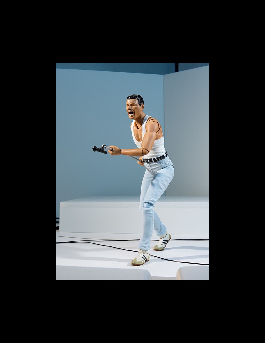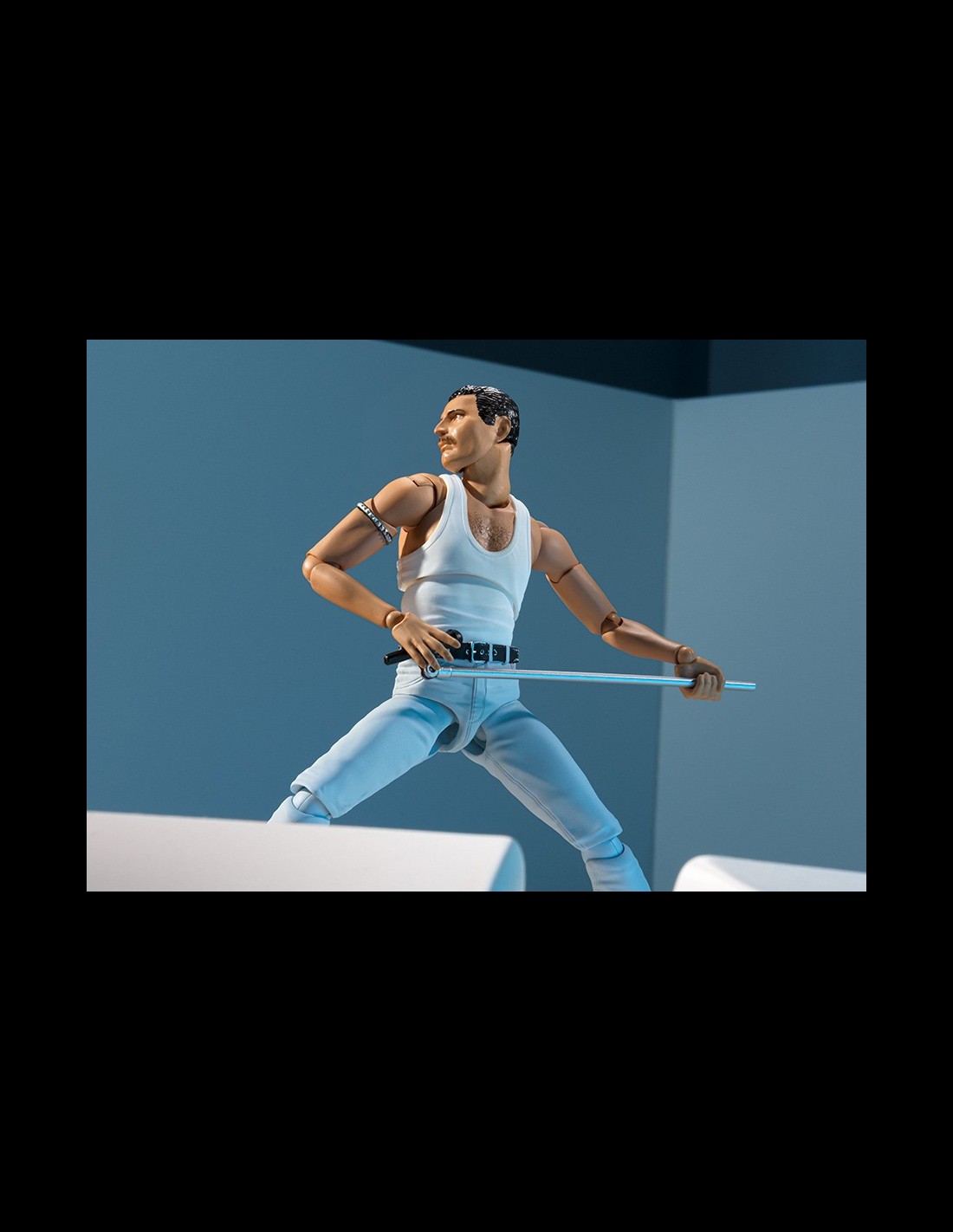 Direttamente dall'indimenticabile Live Aid del 1985, ecco Freddie Mercury che torna nella serie SH Figuarts! La figura ha ottimi dettagli e dispone di articolazioni, mani e volti intercambiabili e un microfono con stand.